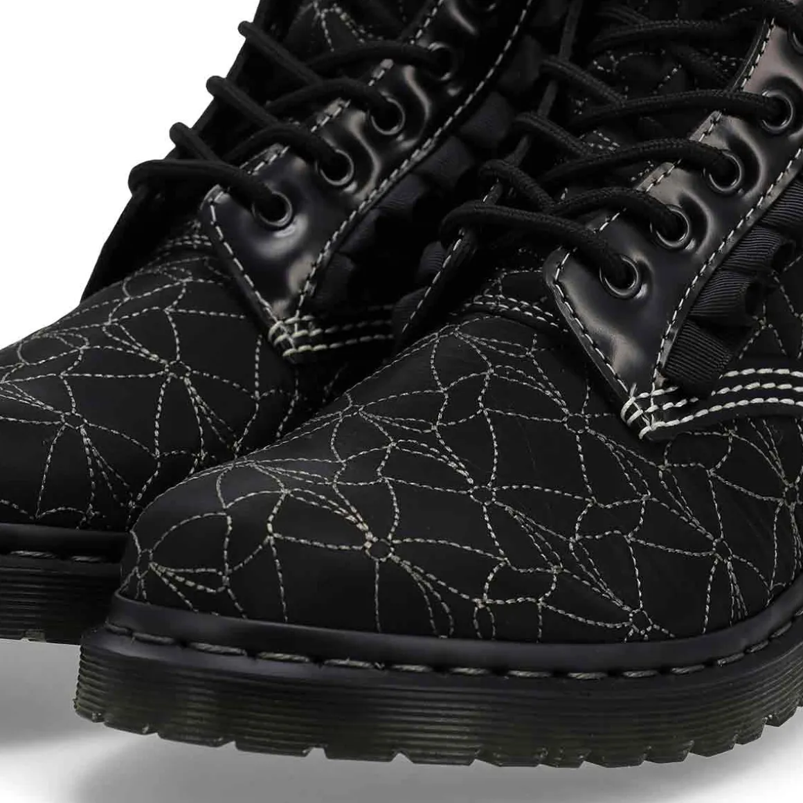 A decorative takeover on a classic. The 1460 Frill 8-eye boot sees the original Dr. Martens’ silhouette embellished with bows and frills. Crafted in Buttero, a soft leather with a satin gloss and supple feel. They stitched intricate bows and contour lines across the upper in contrasting white while weaving black frills behind the eyelets and laces.