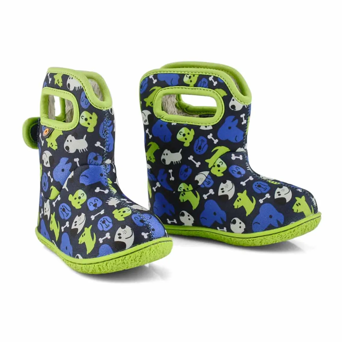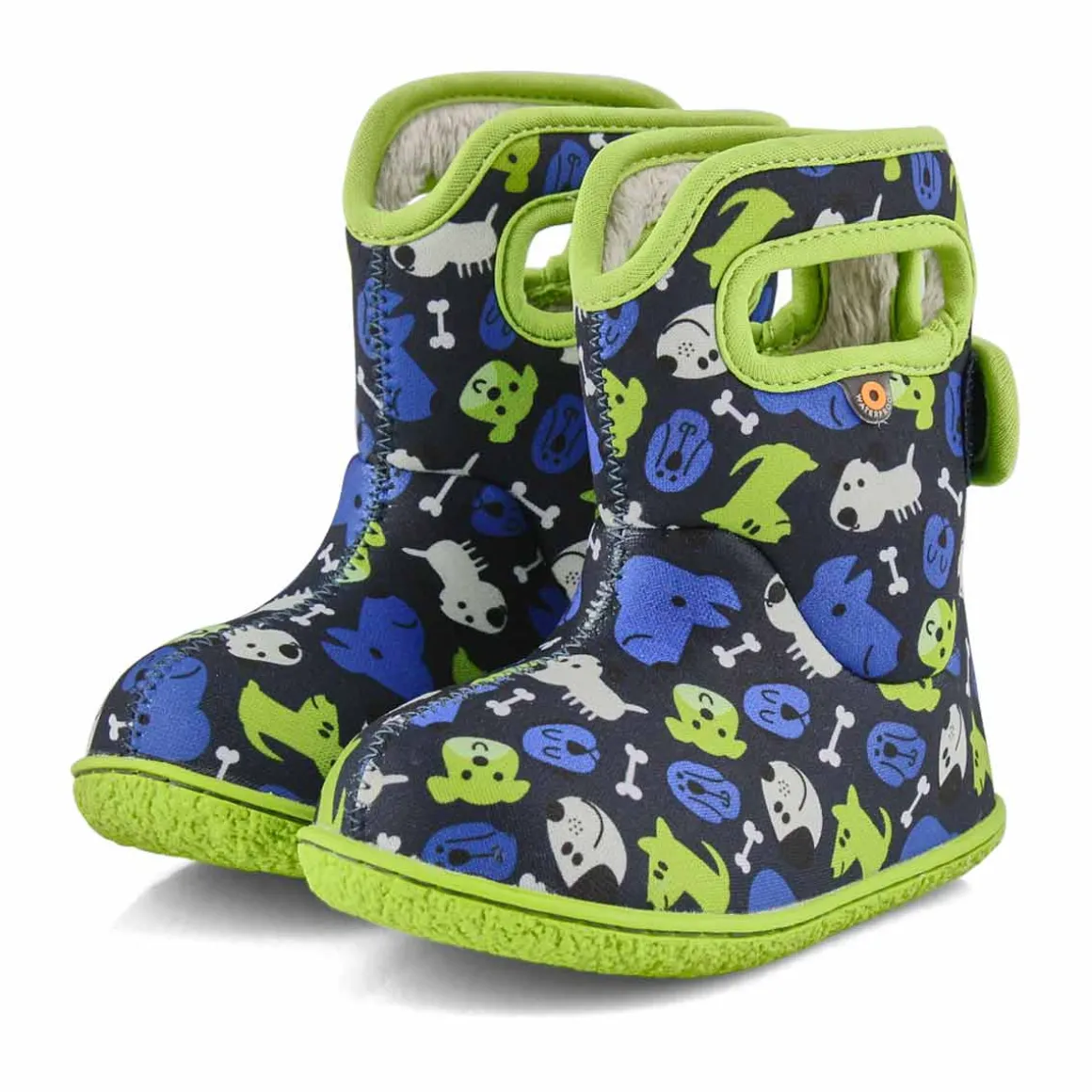Introduce little ones to the great outdoors. These infants’ blue Baby Bogs Puppies by Bogs waterproof boots will keep them warm and dry in damp, chilly weather with a waterproof build and Neo-Tech insulation. Fuzzy plush lining adds an extra snuggly feel, and a hook-and-loop strap makes them simple to get on and off.