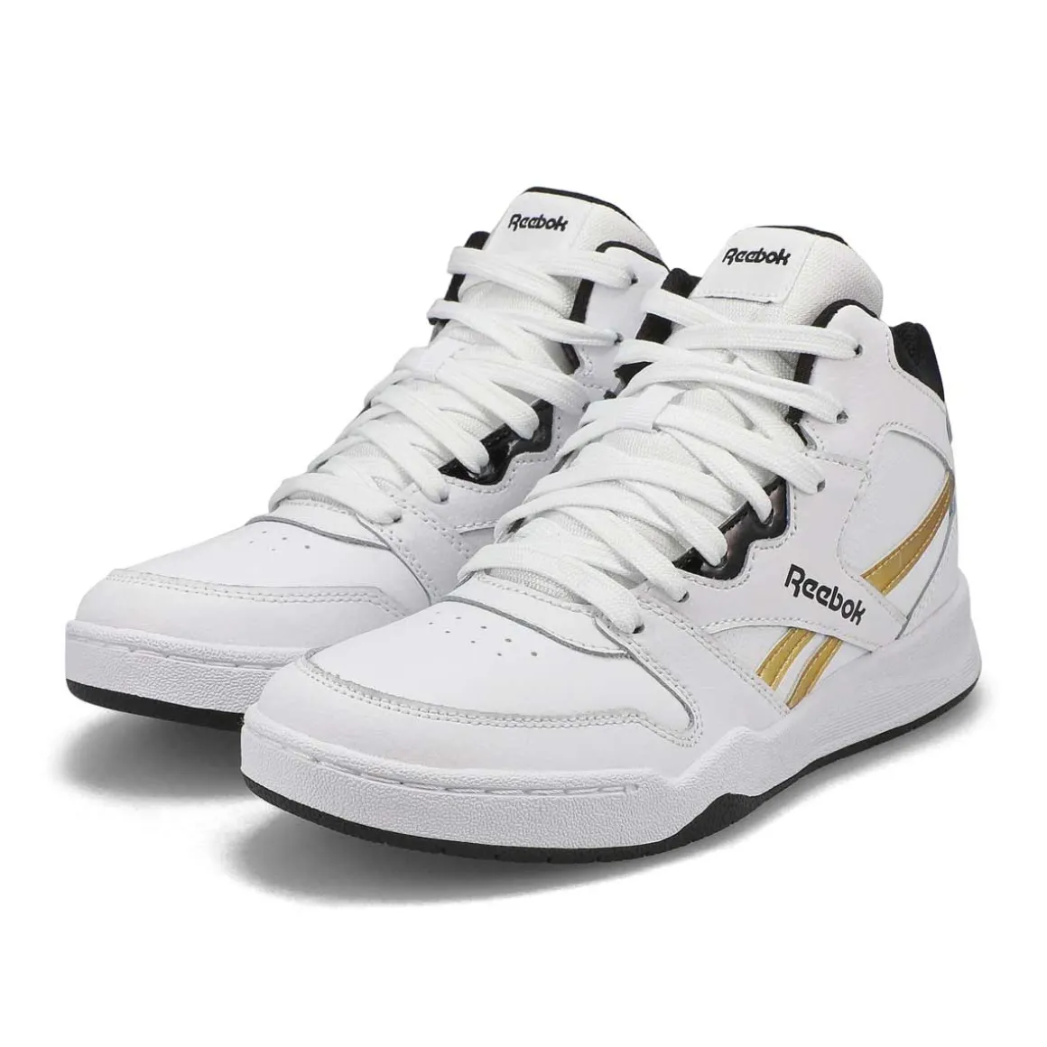 Vintage B-ball vibes for the win. Get all the glory when you lace up the BB4500 Court white/ black/ gold Hi Strap sneaker from Reebok. Solid OG design is all yours with an extra splash of modern style. Featuring a genuine leather upper with textile lining. Lace closure with hook and loop strap. Designed with a durable rubber outsole.