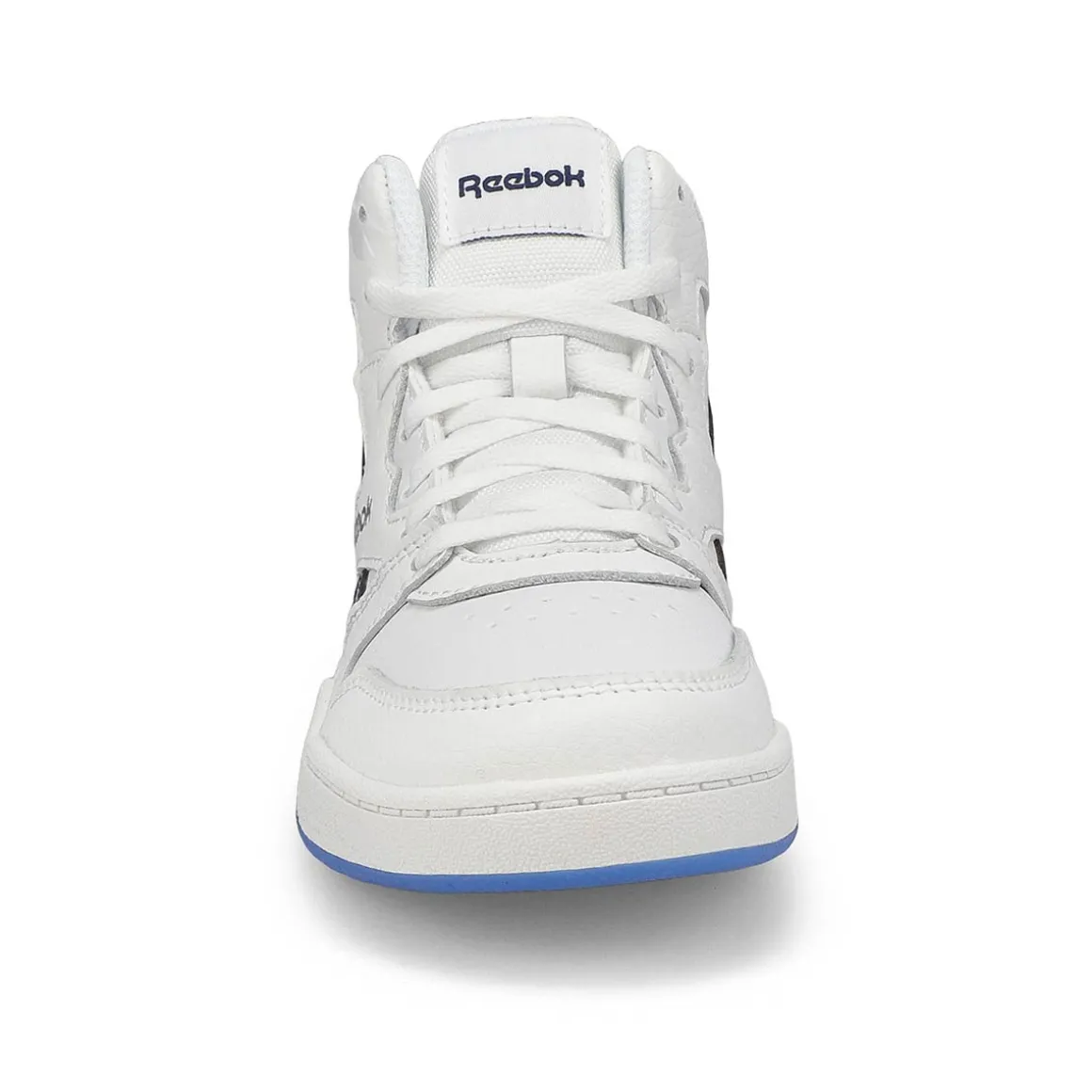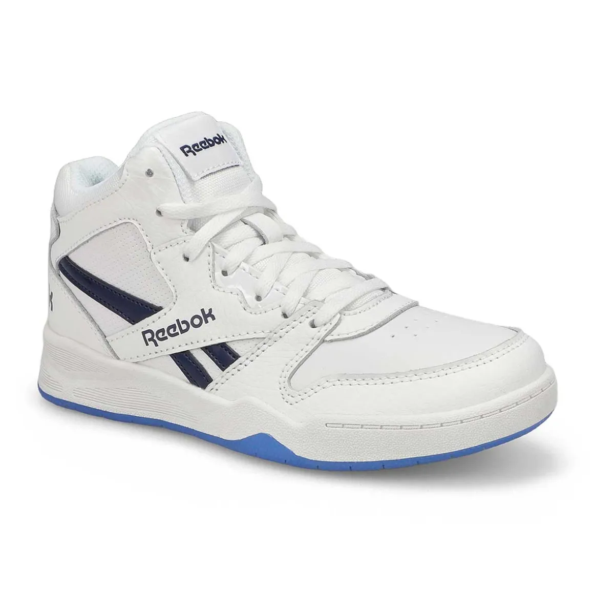 Vintage B-ball vibes for the win. Get all the glory when you lace up the BB4500 Court white/ navy/ ice Hi Strap sneaker from Reebok. Solid OG design is all yours with an extra splash of modern style. Featuring a genuine leather upper with textile lining. Lace closure with hook and loop strap. Designed with a durable rubber outsole.