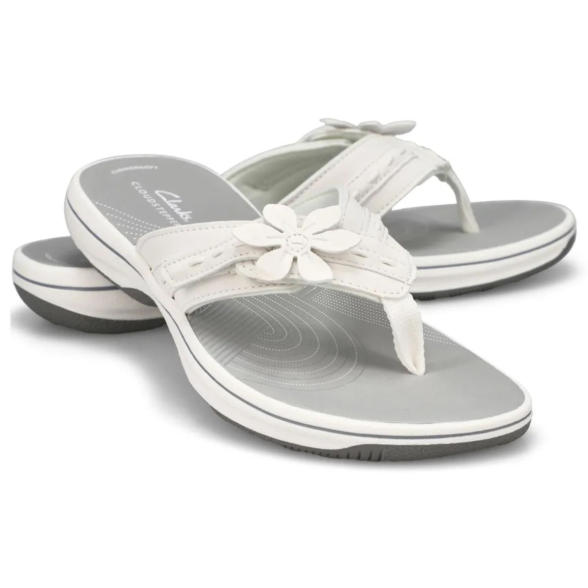 Topped with a pretty flower detail, the Breeze Opal white thong flip-fllop sandal from Clarks is part of their Cloudsteppers collection, so you know that total underfoot comfort is a sure thing. It’s crafted with soft synthetic uppers for a skin-gentle feel, while grippy soles make for confident support and easy-breezy steps.