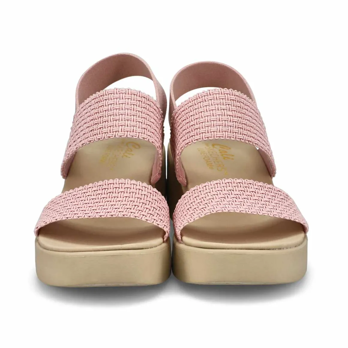 Heighten your look stylish comfort in the Cali Day off white Casual Sandal from Skechers. This lightweight sandal features a stretchy knitted double band strap upper with a sling back and a cushioned Luxe Foam footbed. Match warm-weather style with toe-to-toe comfort from Skechers contoured well-cushioned Luxe Foam Footbed. 2 1/2-inch heel height.