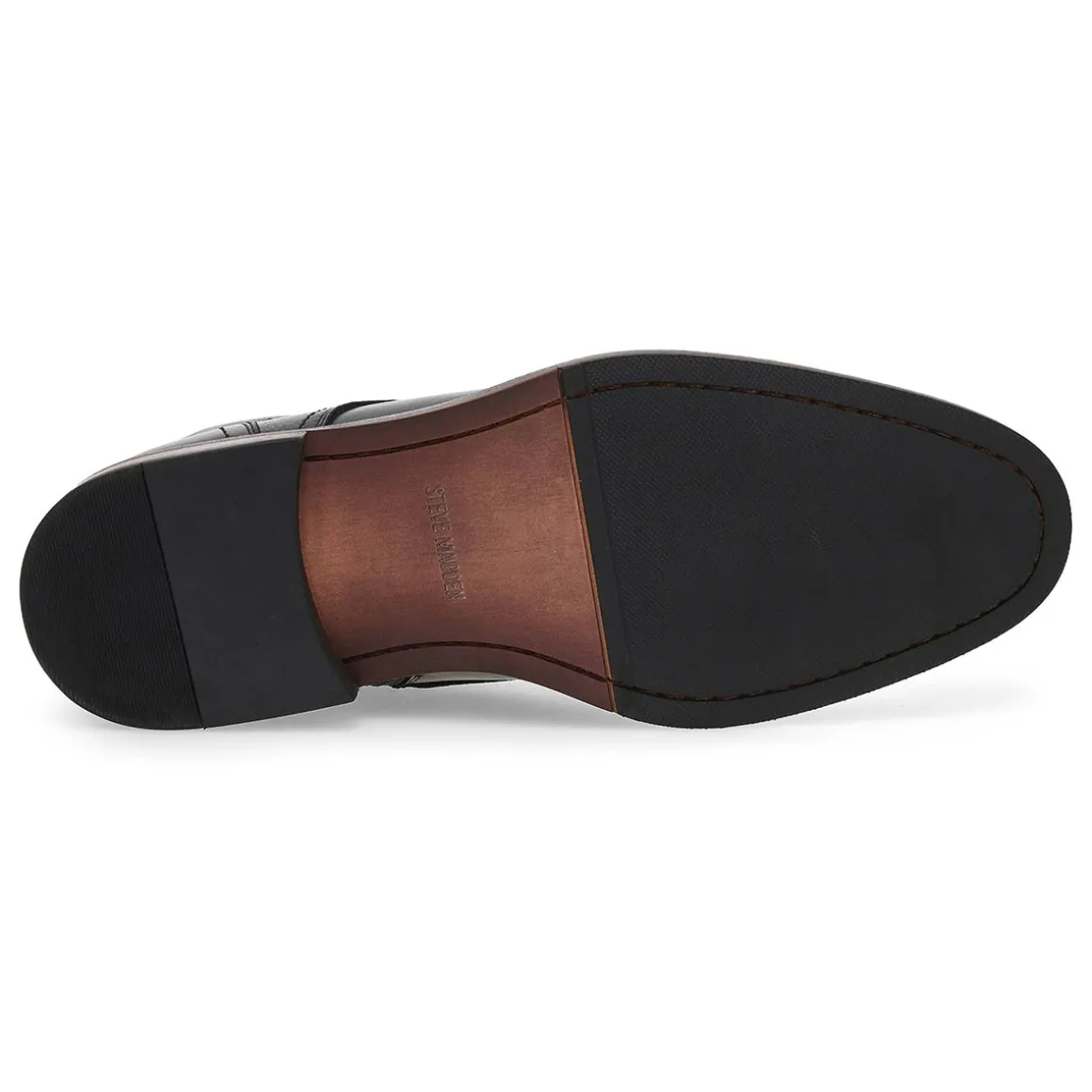 Walk in the Captain leather black lace up boot from Steve Madden to feel and look good all day. Featuring a leather upper. with a breathable textile lining that surrounds the foot in comfort. Lace up styling with a secure fit. Lightly cushioned insole for all day comfort. Durable ruuber outsole 1 inch heel height.
