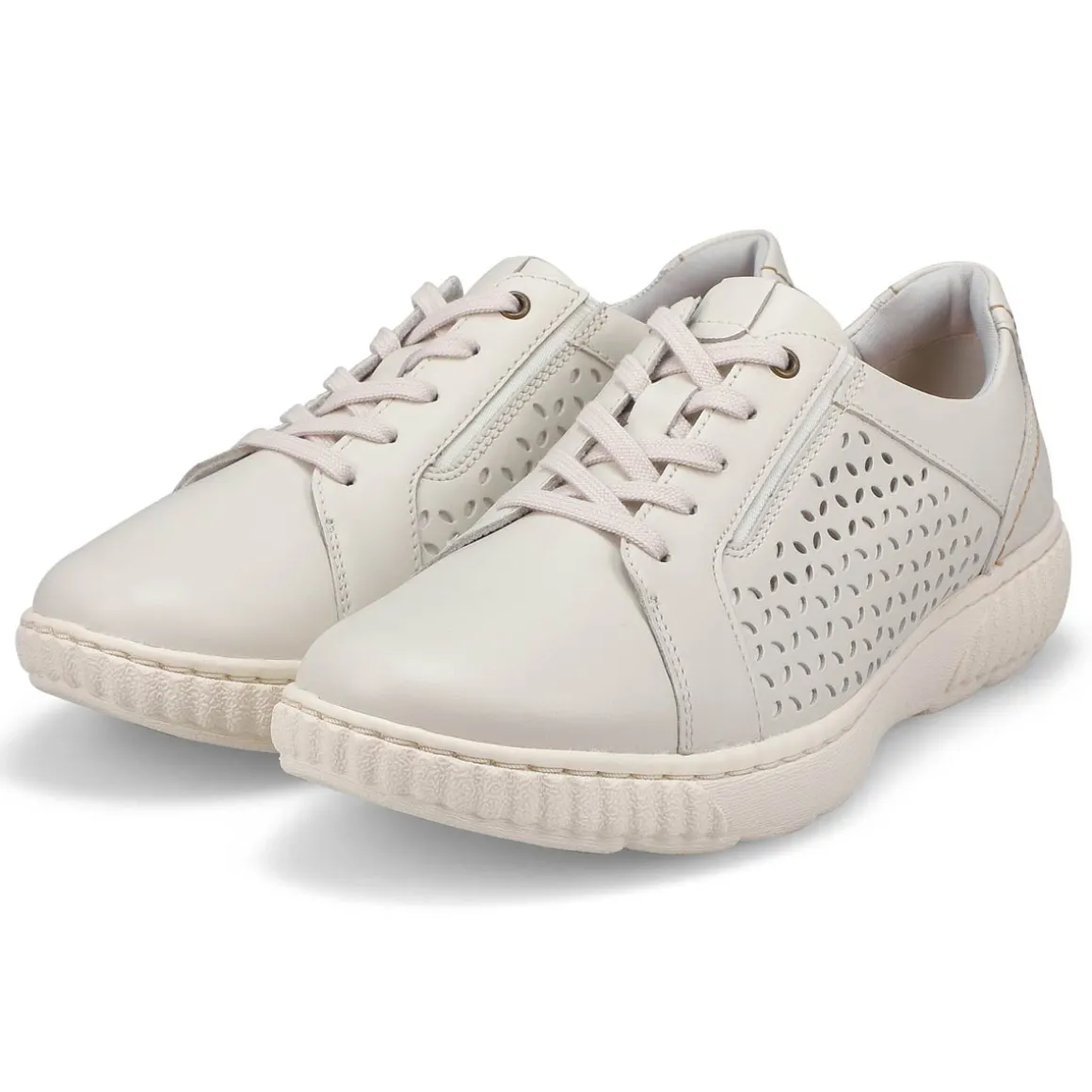 Add a tailored addition to your casual collection with the Caroline Ella bronze metallic lace up sneaker from Clarks. These cool kicks are crafted with leather, feature a sophisticated silhouette, and have a intricate perforated design on the exterior. The Caroline Ella is designed with a removable Ultimate Comfort padded insole. Wide Width.