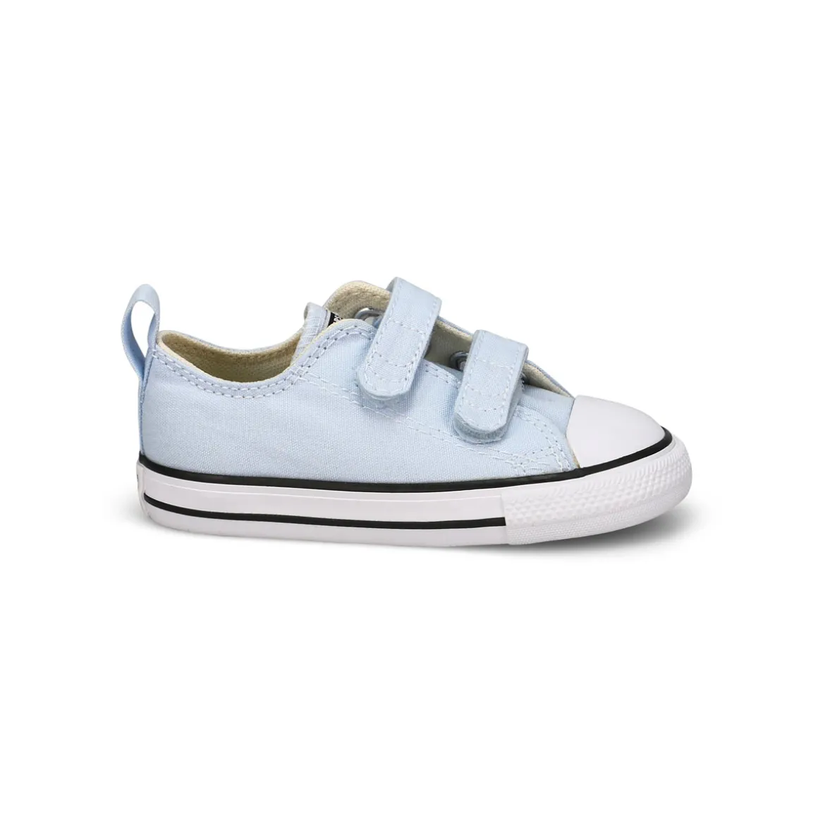 Created in 1917, the Chuck Taylor All Star sneaker was the original basketball shoe. Its use has changed over the years, but it’s still perfect in its simplicity. With its timeless silhouette, vulcanized rubber sole and unmistakable ankle patch, the Chuck is ready for you to make it your own. You’re little one will love the Chuck Taylor All Star 2V blue supermoon sneaker from Converse.