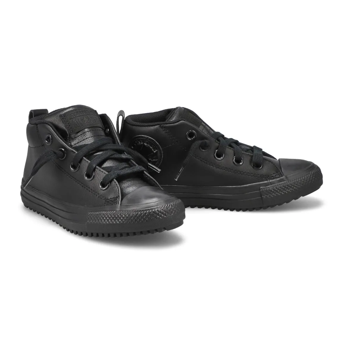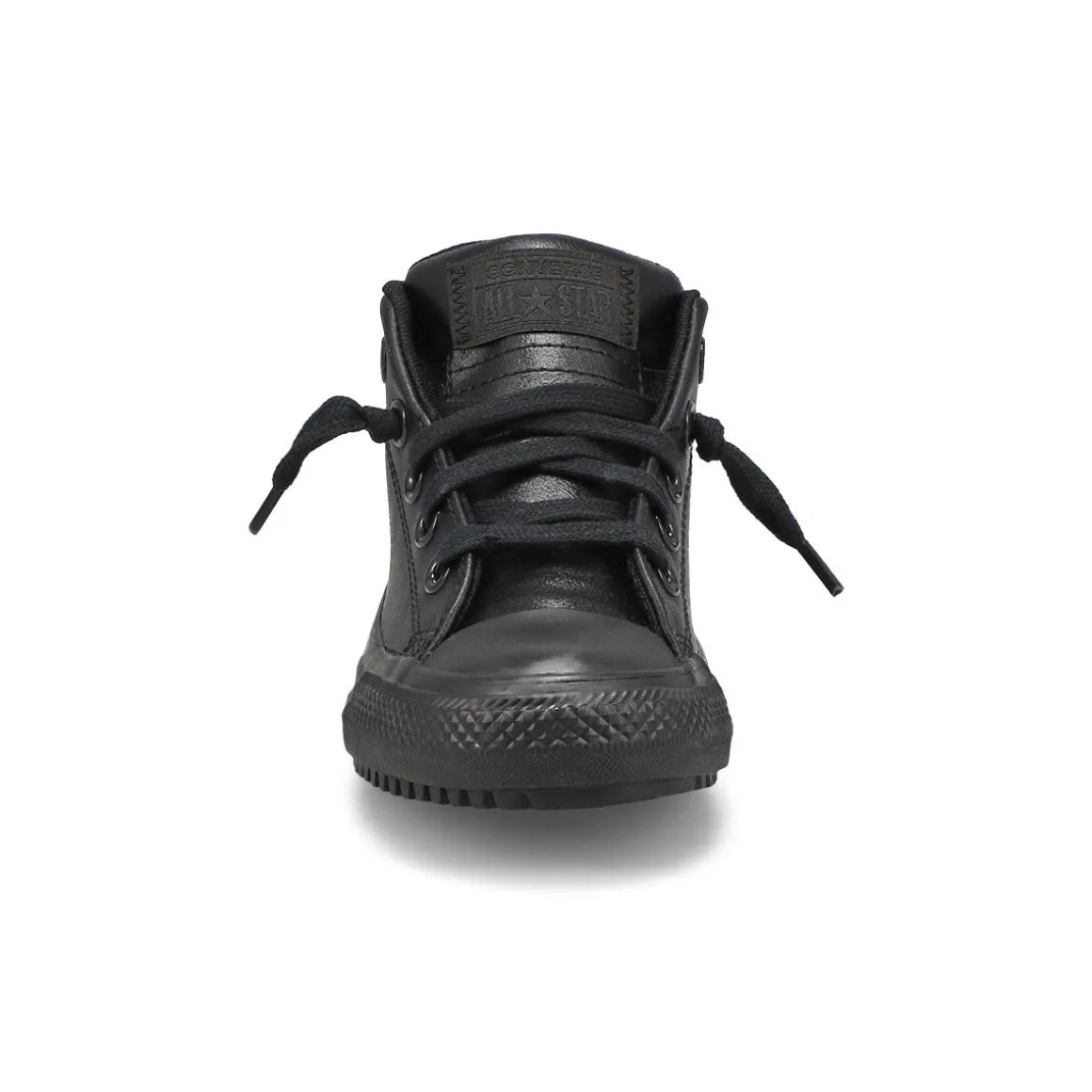 Cushioned details with a flair for the dramatic, the Chuck Taylor All Star Climate black /black by Converse amps up the iconic chuck silhouette. Featuring a durable genuine leather upper, and a soft, kid-friendly lining. The All Star Climate sneaker is designed with fixed laces and a gored tongue allow for easy on and off.