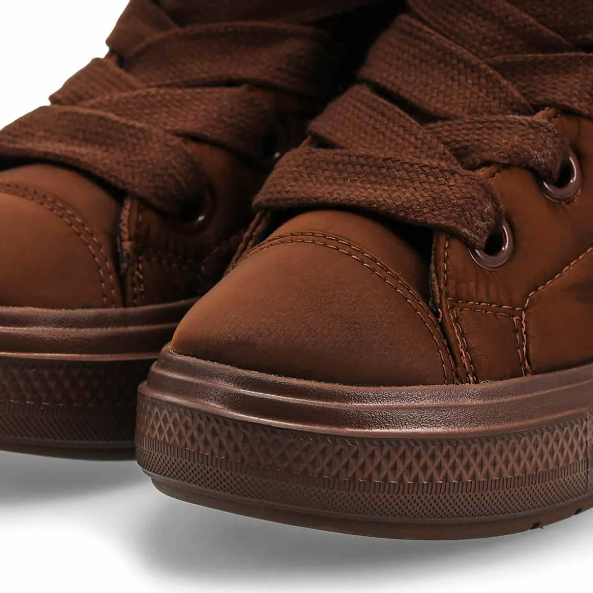 Toasty as a sleeping bag, cool as your favourite Chucks. The cozy Chuck Taylor All Star Elements Winter Boots From Converse, brings the heat—in style and function. Plus, oversized details give every ‘fit a dramatic edge. A water-repellent, insulated polyester upper helps keep you warm and dry. Cozy fleece lining helps lock in warmth. Traction rubber outsole helps provide grip on wet and slippery surfaces.