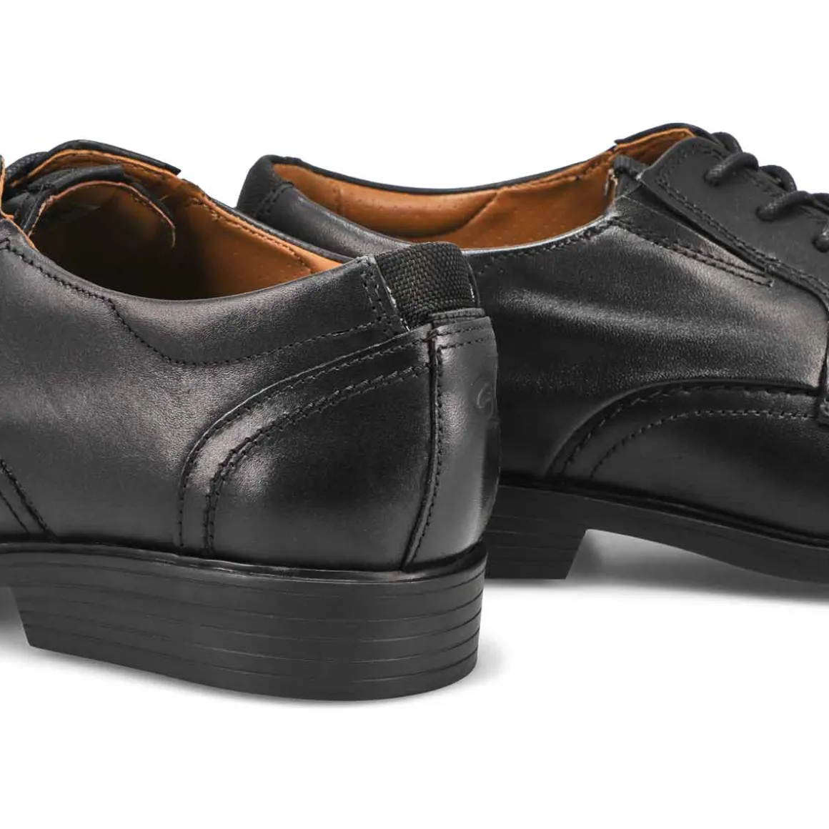 Enhance your formal ensemble with the Clarkslite Cap black dress shoe from Clarks.The distinctive stitching details add to the visual appeal of the shoe. Featuring a genuine leather upper with a textile /synthetic lining that surrounds the foot in comfort. Designed with lace up styling for a secure fit. Wide Width