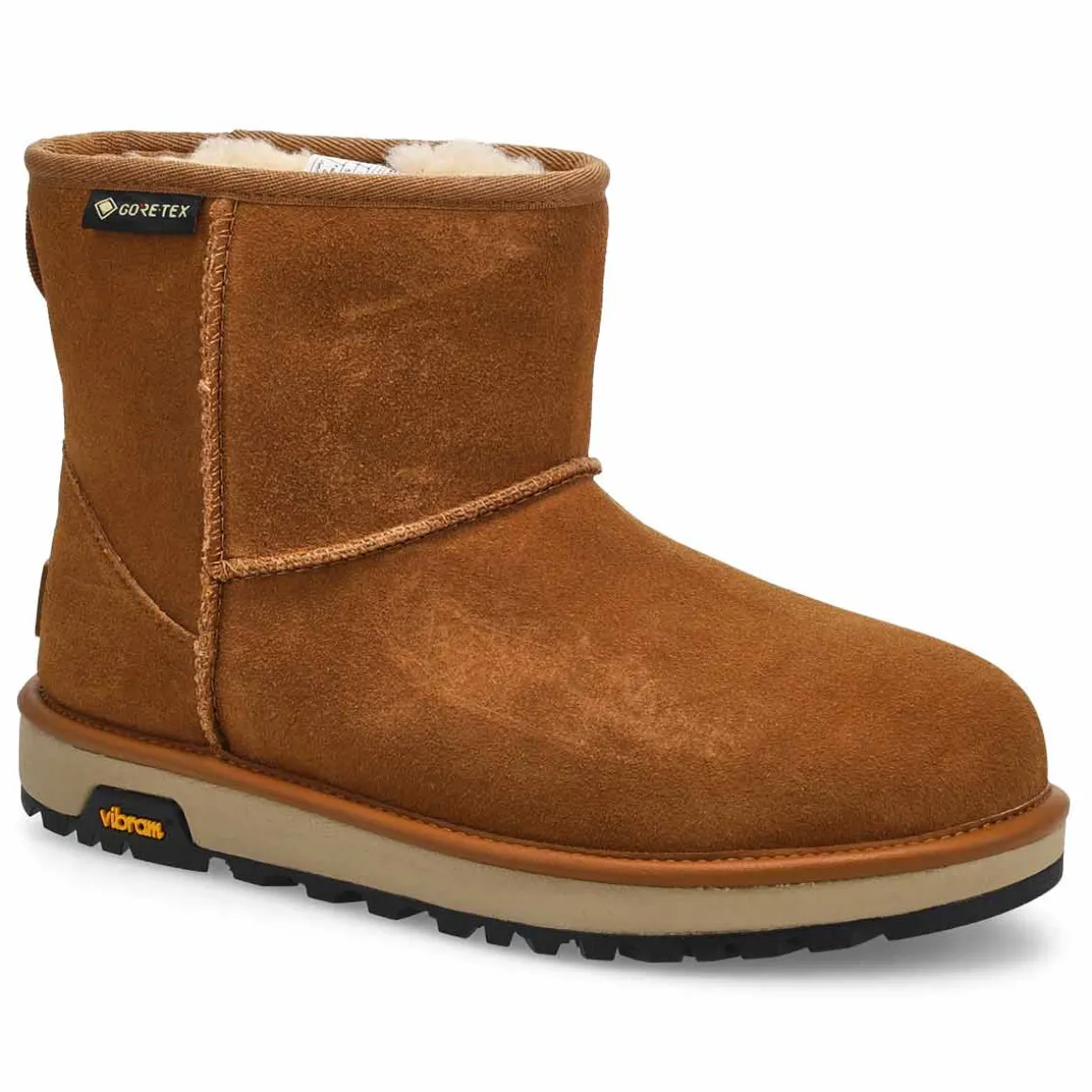Never let the weather determine your plans: head out rain or shine in the Classic Mini GTX boot from UGG. This iteration of UGG’s Classic Boot is built with waterproof suede and an internal GORE-TEX membrane to keep out rain and snow. Slip into the cozy warmth of their UGGplush lining and insole, and stay toasty in temps as low as -20ºC. Underfoot, you’ll be supported by a lightweight sugarcane EVA midsole and grippy Vibram outsole.