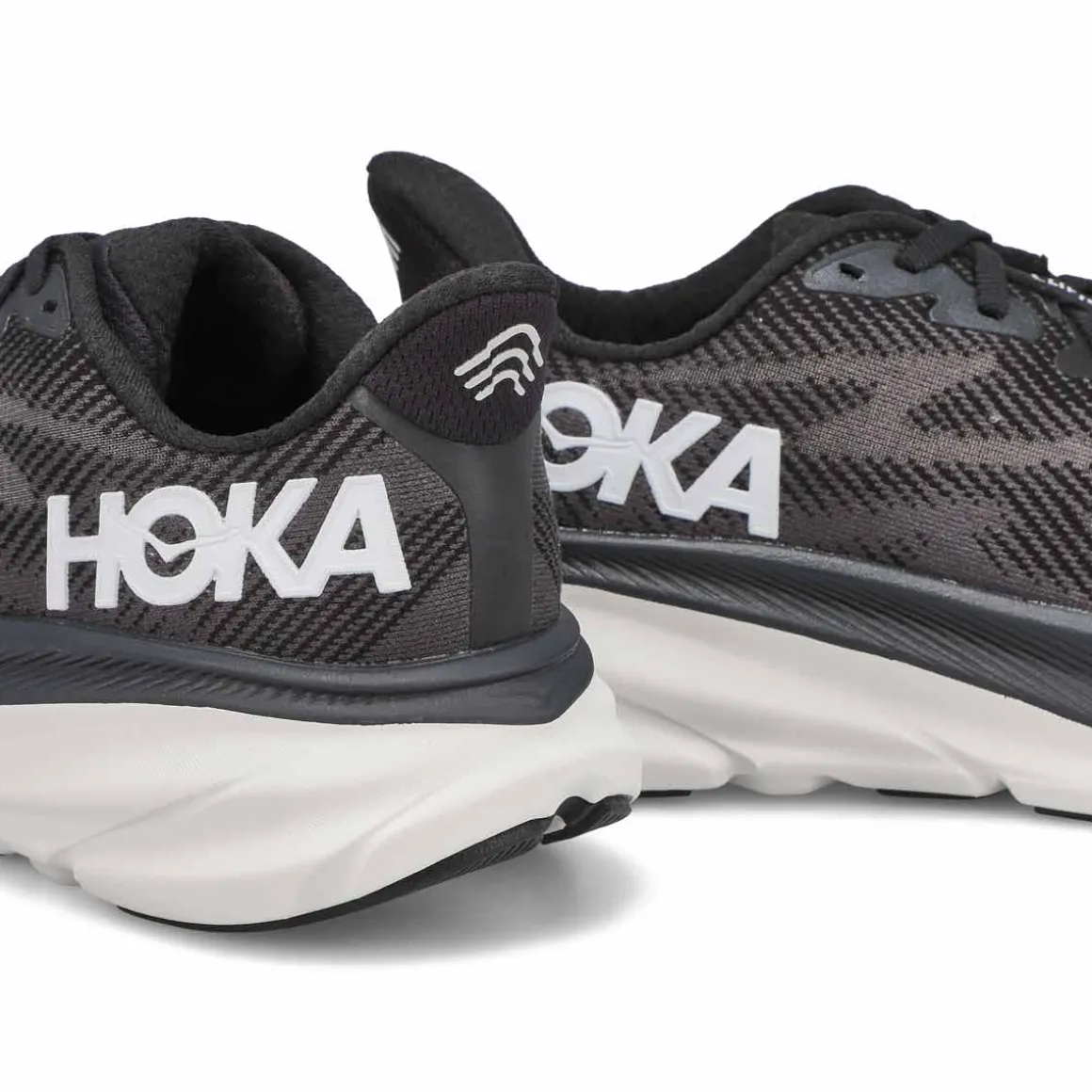 Eliminating weight while adding in stack height, the Clifton 9 black/ white lace up performance Runner from Hoka delivers a revitalized underfoot experience with a responsive new foam and improved outsole design. Removing overlays and hotmelts, the stripped back upper has been consciously crafted with a plusher heel, reflective heel panel, and streamlined tongue with single side medial gusset. Heel-to-toe Drop: 5mm.