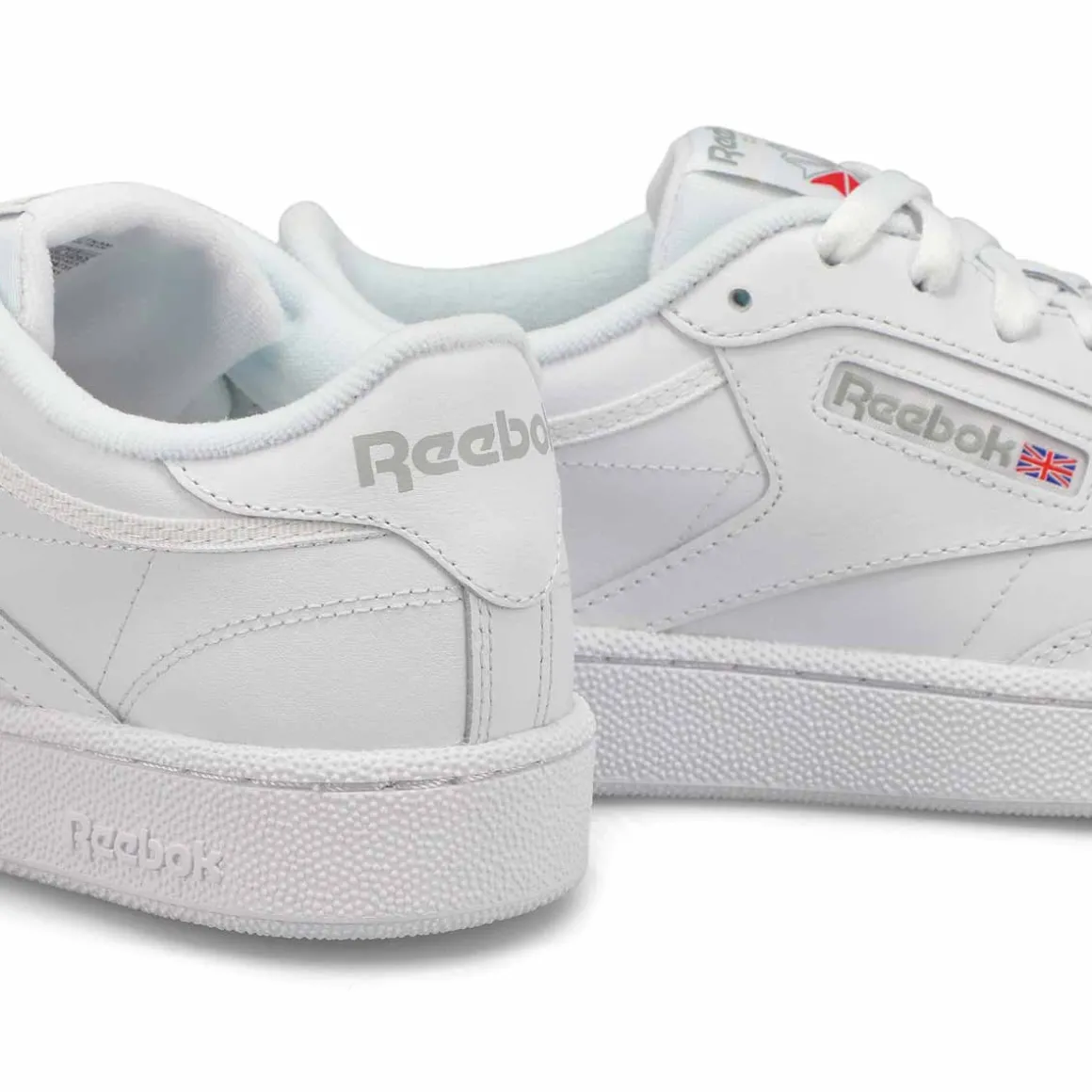 Clean, minimalist design. The Club C 85 white/ royal tennis-inspired shoes from Reebok keeps your look sleek and simple. Pops of subtle contrast color adds a chic touch. A Reebok logo window with a Union Jack gives them old-school style. The upper is made of soft, flexible leather. There’s nothing quite like a fresh white sneaker!