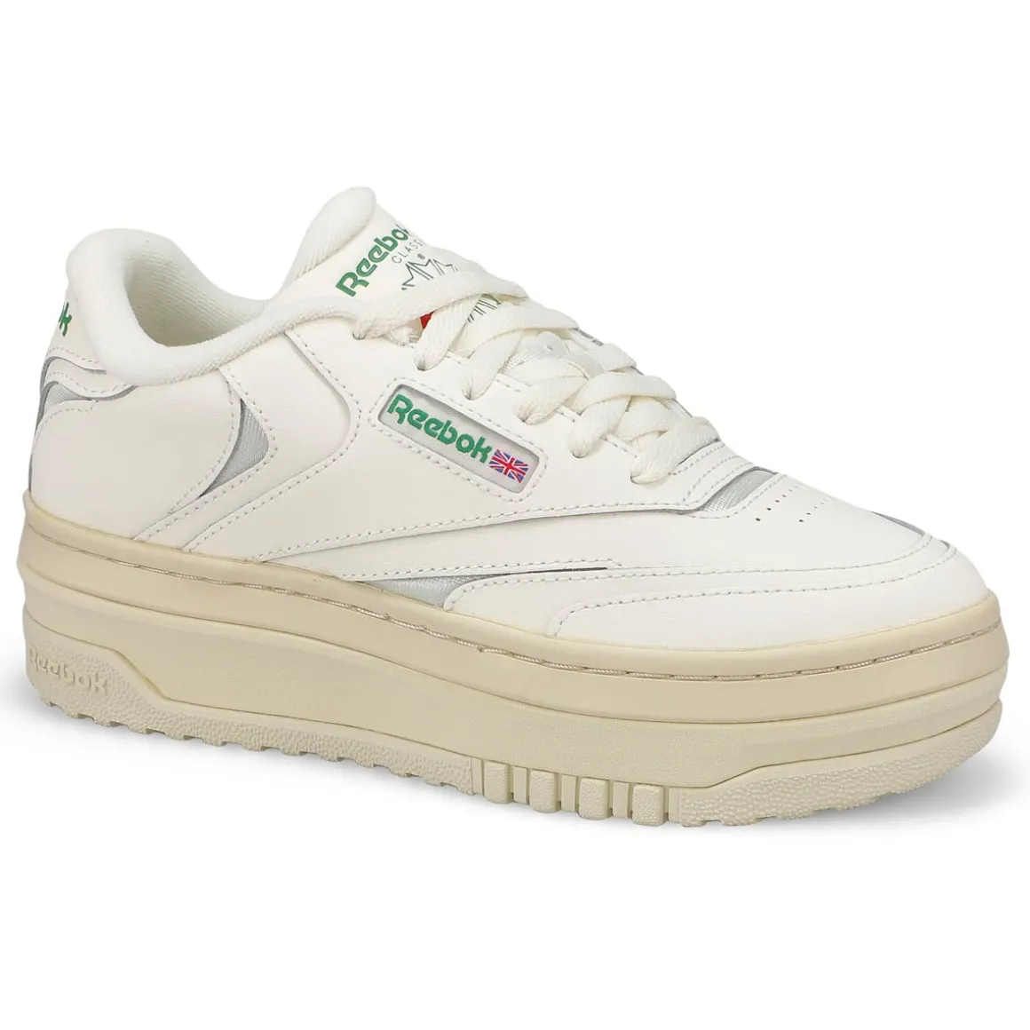 Being extra is a good thing. These Reebok Club C Extra chalk/chalk/glengreen shoes prove it. An exaggerated platform midsole with a geometric design gives you an amplified look. Don’t miss the outsole which has a 3D tennis racket effect. Subtle hits of iconic color on the leather upper seal the deal.