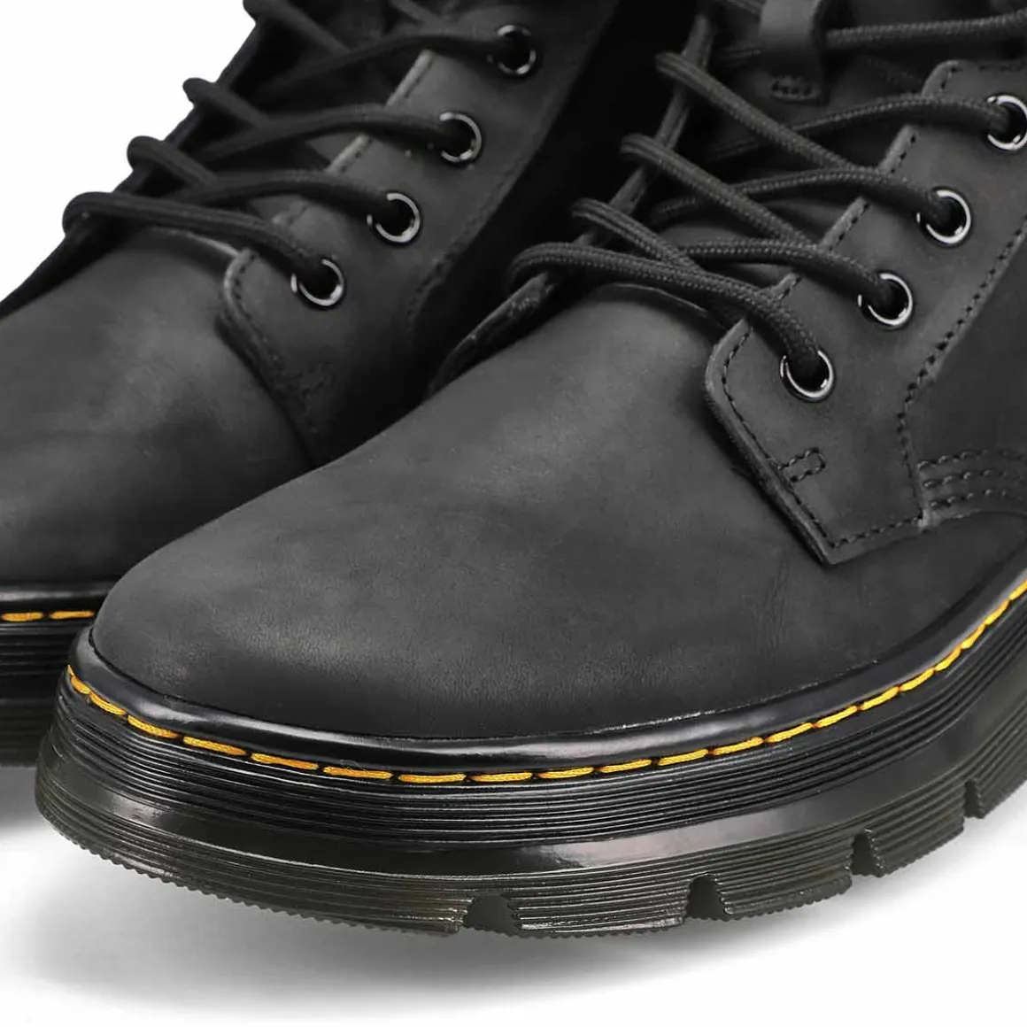 The Combs 8-eye unisex boot was created to withstand anything — with serious style. Built to last, the shoe combines lightweight materials like synthetic leather and tough nylon with heavy-duty, Goodyear-Welted construction. The boot sits on an iconic AirWair™ sole, which is oil and fat resistant, with good abrasion and slip resistance.