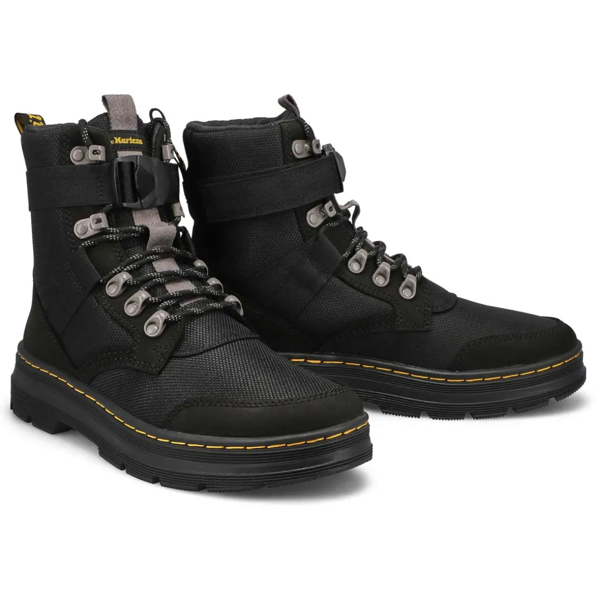 Inspired by Dr. Marten’s utilitarian heritage. The newly evolved Combs Tech II utility boot is built from a tough-yet-light hybrid of Accord leather and Poly Ripstop for relaxed wearability with classic DM’s edge. The headline silhouette from our casual Tract range is enhanced with echoes of our DNA throughout — with side webbing inspired by our heel loops, yellow popped eyelets, AirWair zip pulls and our trademark yellow stitching.