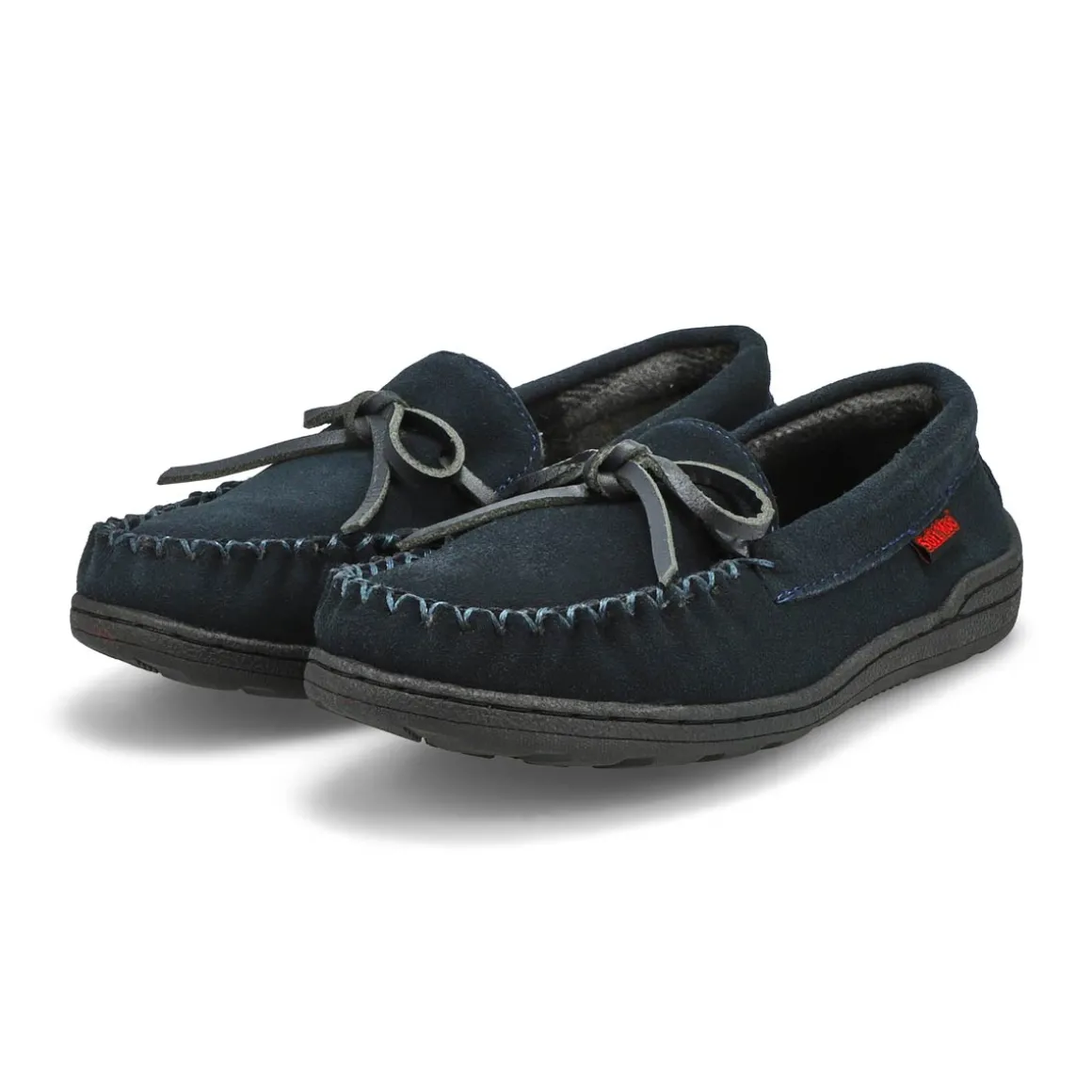 Their feet will thank you once they slip on the Danny Jr navy SoftMocs slipper from SoftMoc. Featuring beautiful suede upper with a soft plus lining that surrounds the foot in comfort. The Danny SoftMocs is designed with a durable TPR sole allows for indoor/outdoor use. Slight dye transfer may occur with darker coloured sheepskin during first few weeks of wear.