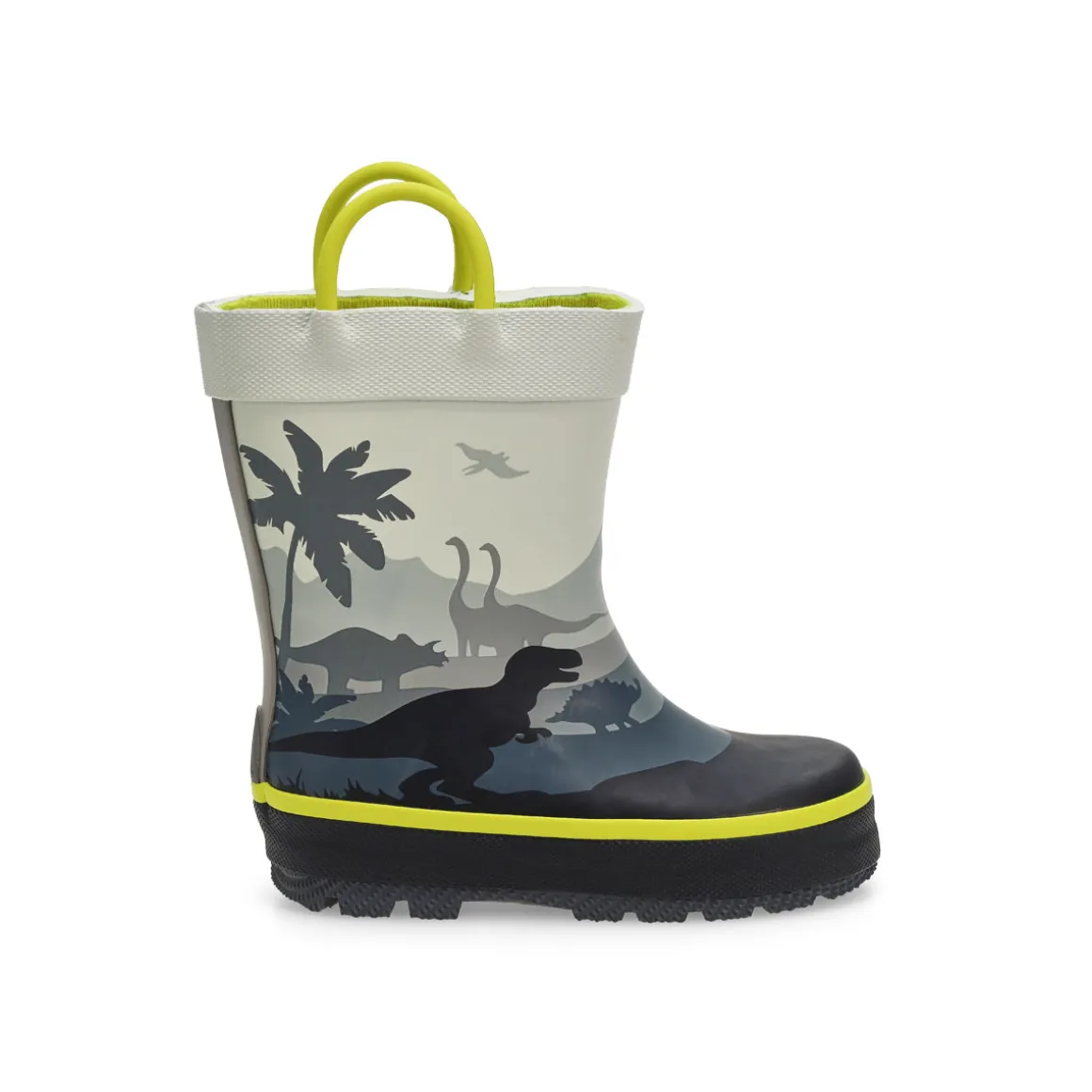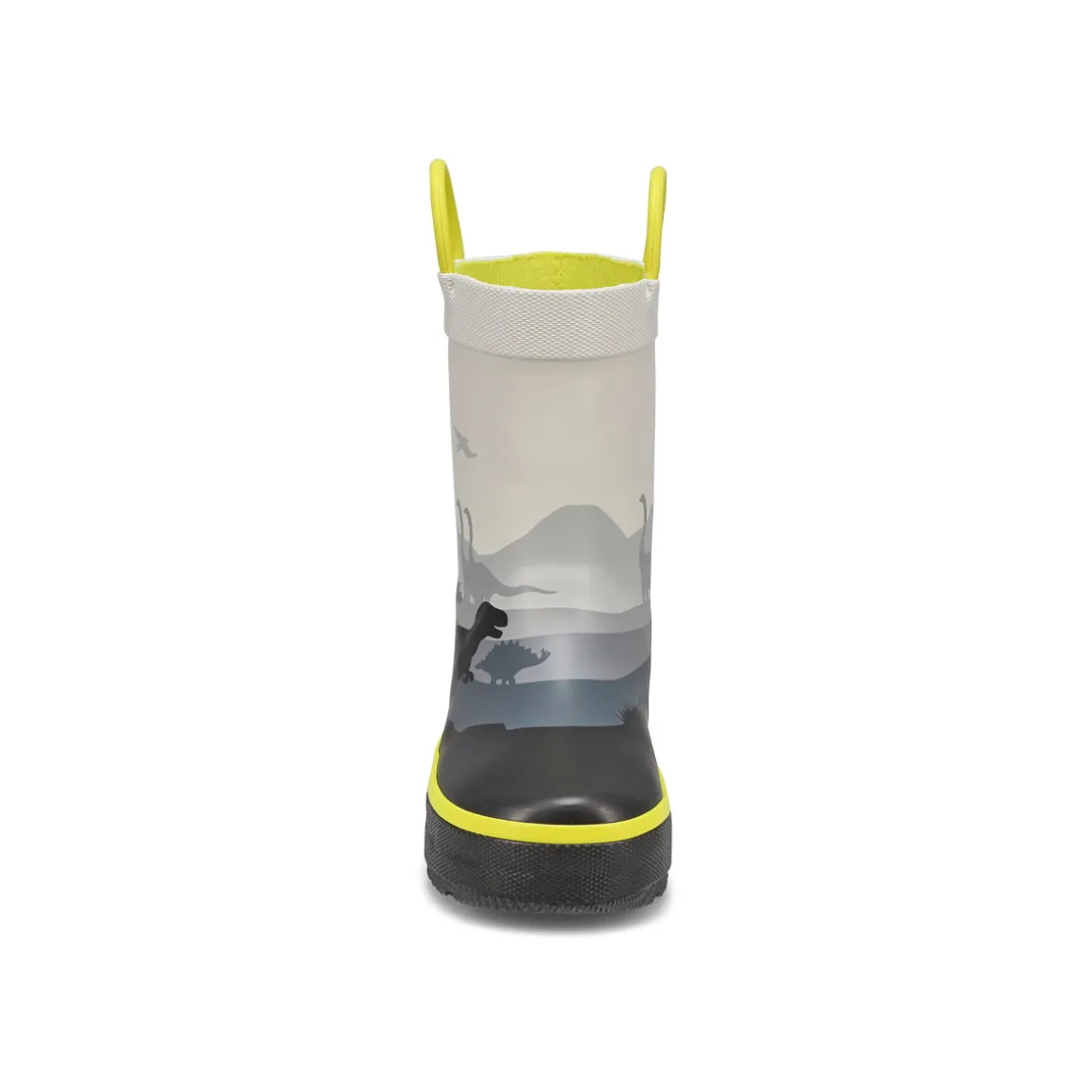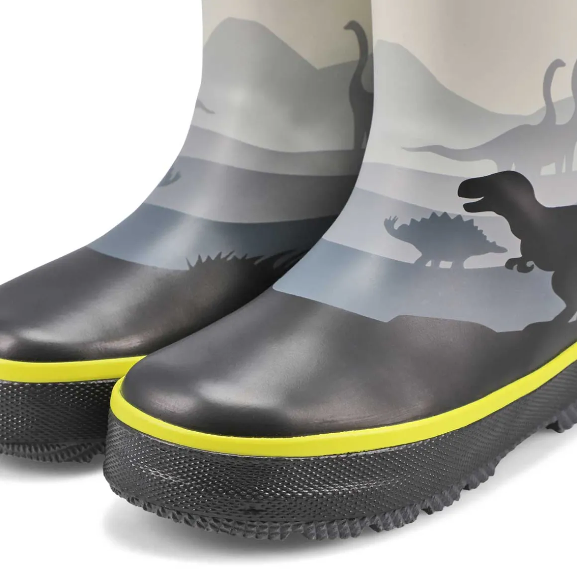 Your little one will feel super brave in the Dino waterproof grey rain boots from Kamik. These 100% waterproof kids’ rain boots are made of flexible, vulcanized rubber that’s PVC-free. Perfect for walking around and exploring on rainy days. Featuring NiteRays reflective technology. Removable EVA footbed for cushioning and comfort.
