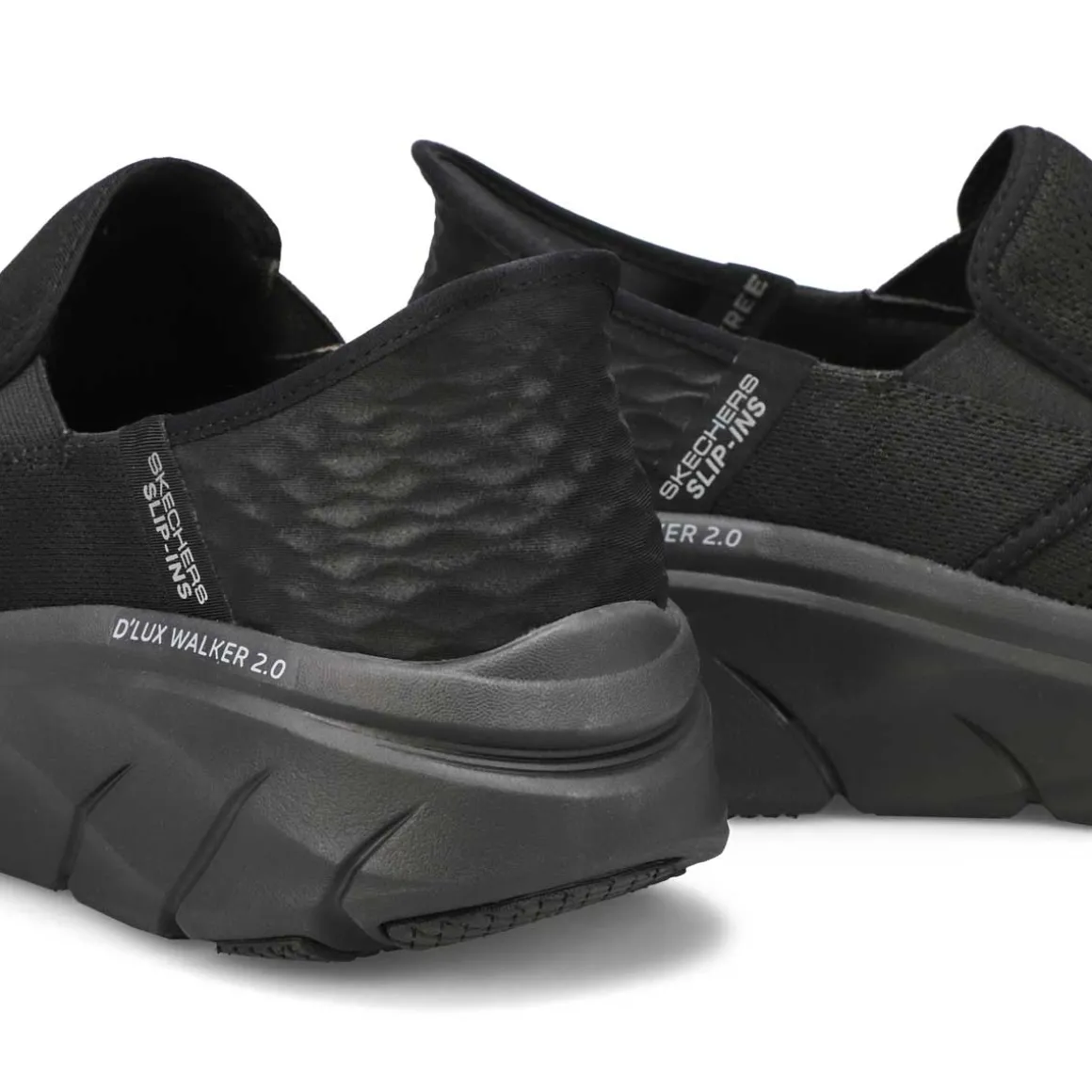 Enjoy longer walks with supportive comfort wearing the D’Lux Walker 2.0 Reeler Slip-Ins Wide black /black sneaker from Skechers. Designed with Skechers exclusive Heel Pillow which helps hold your foot securely in place. This vegan walking design features an engineered knit and synthetic upper, well-cushioned midsole, and a Skechers Air-Cooled Memory Foam comfort insole. Wide Width.