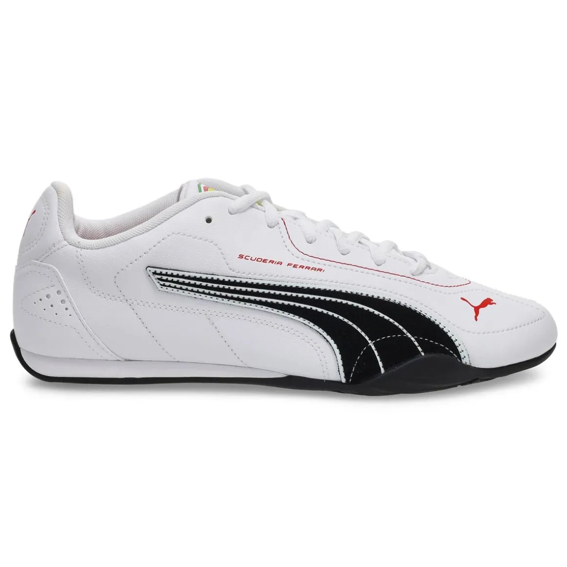 Unleash your inner racer with Ferrari Catch white/ black lace up sneaker from Puma. The latest collection blends the thrill of the track with street-ready sophistication. Designed for fans who appreciate sleek, casual, and refined everyday wear, it captures Ferrari’s racing legacy through clean lines, oversized silhouettes, and understated elegance.