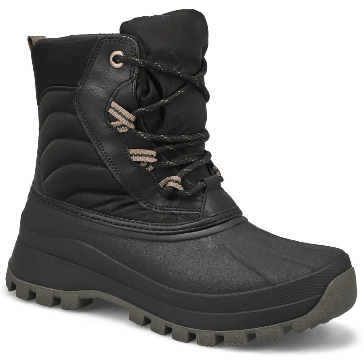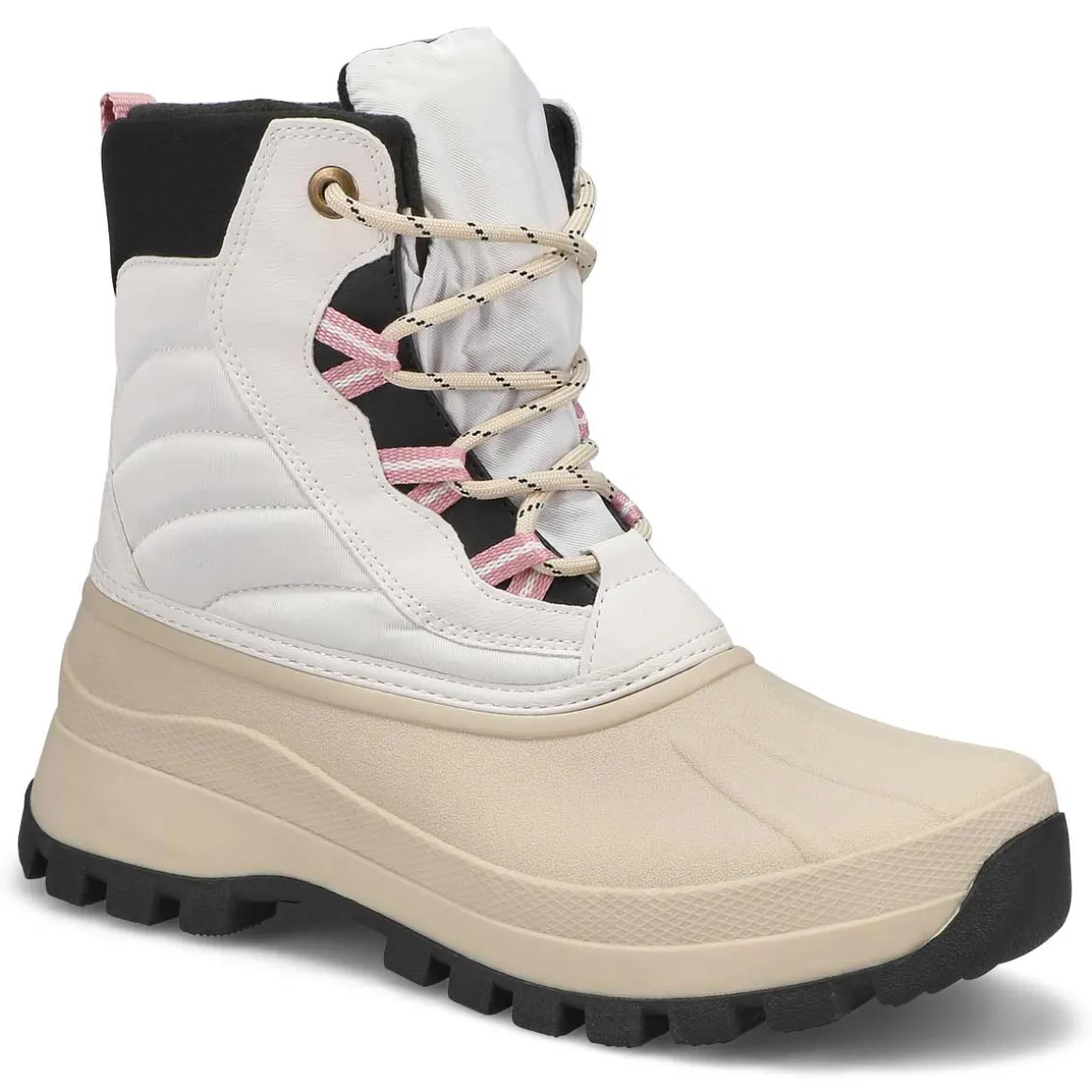 The Fiska Waterproof oyster white winter boot from Cougar is a mid-calf, light-weight nylon and synthetic winter boot. Featuring a rounded toe and front lace closure for a secure fit. Polar plush lining with Thermolite Insulation. Polar fleece lining surrounds the foot in soft comfort. Slip-resistant, Thermoplastic rubber outsole with lightweight EVA midsole.