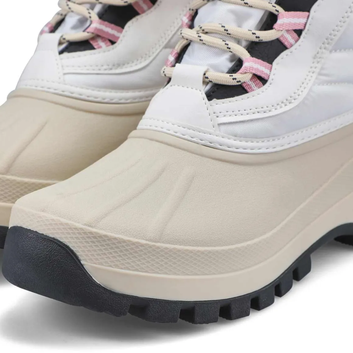 The Fiska Waterproof black winter boot from Cougar is a mid-calf, light-weight nylon and synthetic winter boot. Featuring a rounded toe and front lace closure for a secure fit. Polar plush lining with Thermlite Insulation. Polar fleece lining surrounds the foot in soft comfort. Slip-resistant, Thermoplastic rubber outsole with lightweight EVA midsole.