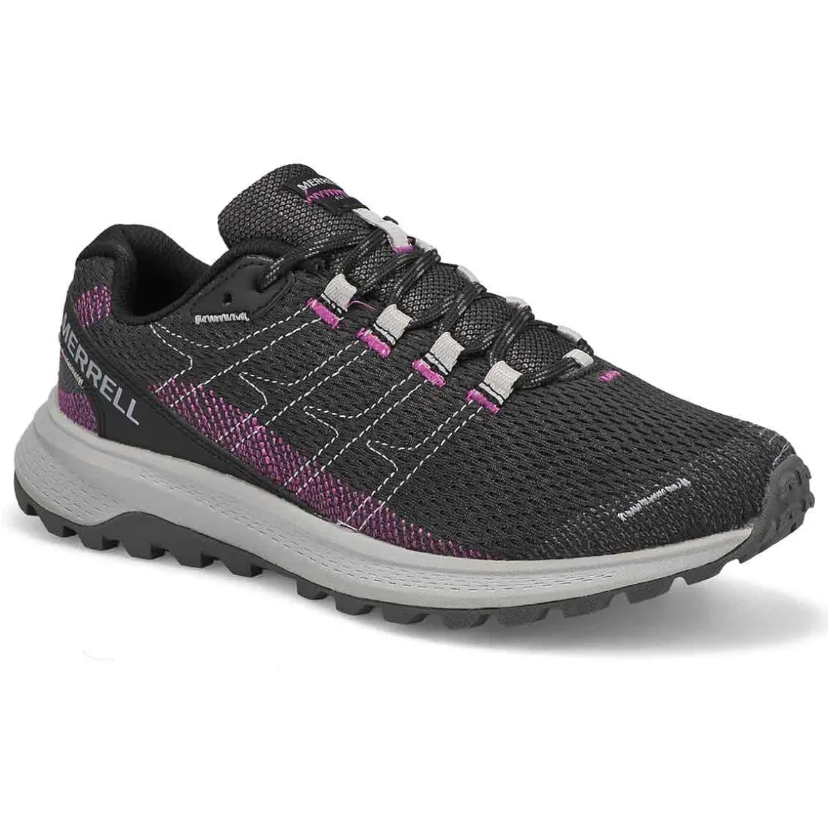 Lightweight and capable, the Fly Strike Hiking Sneaker from Merrell has a luggy trail runner with abrasion-resistant upper is designed for fast runs on paved and hard-packed trails. Super Rebound Compound provides durable shock absorption in the heel to help reduce torque and allow for a smooth transition into the midfoot. Merrell sticky rubber outsole with durable traction that grips when and where you need it.