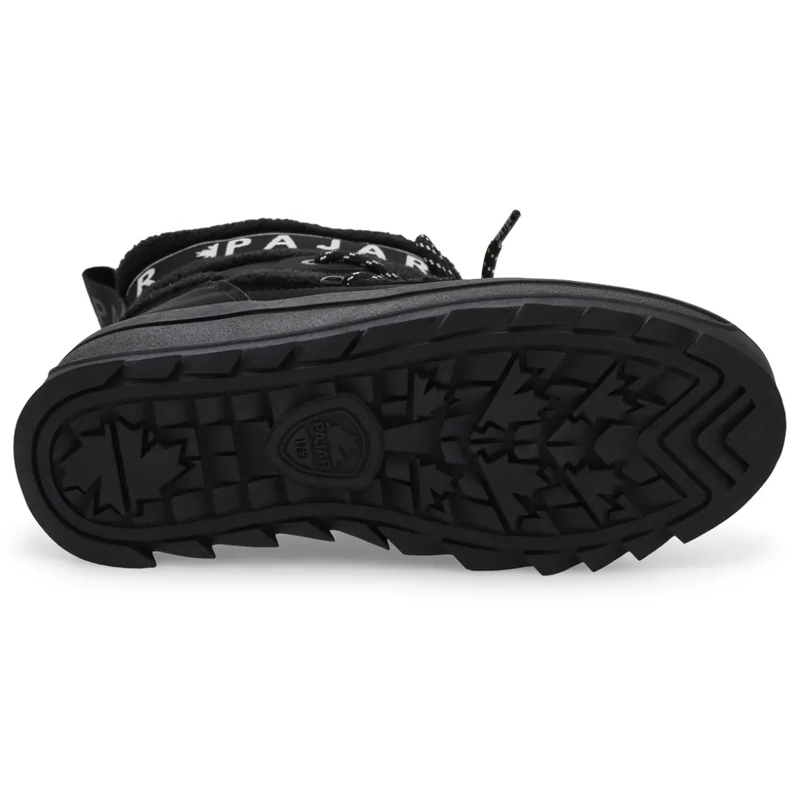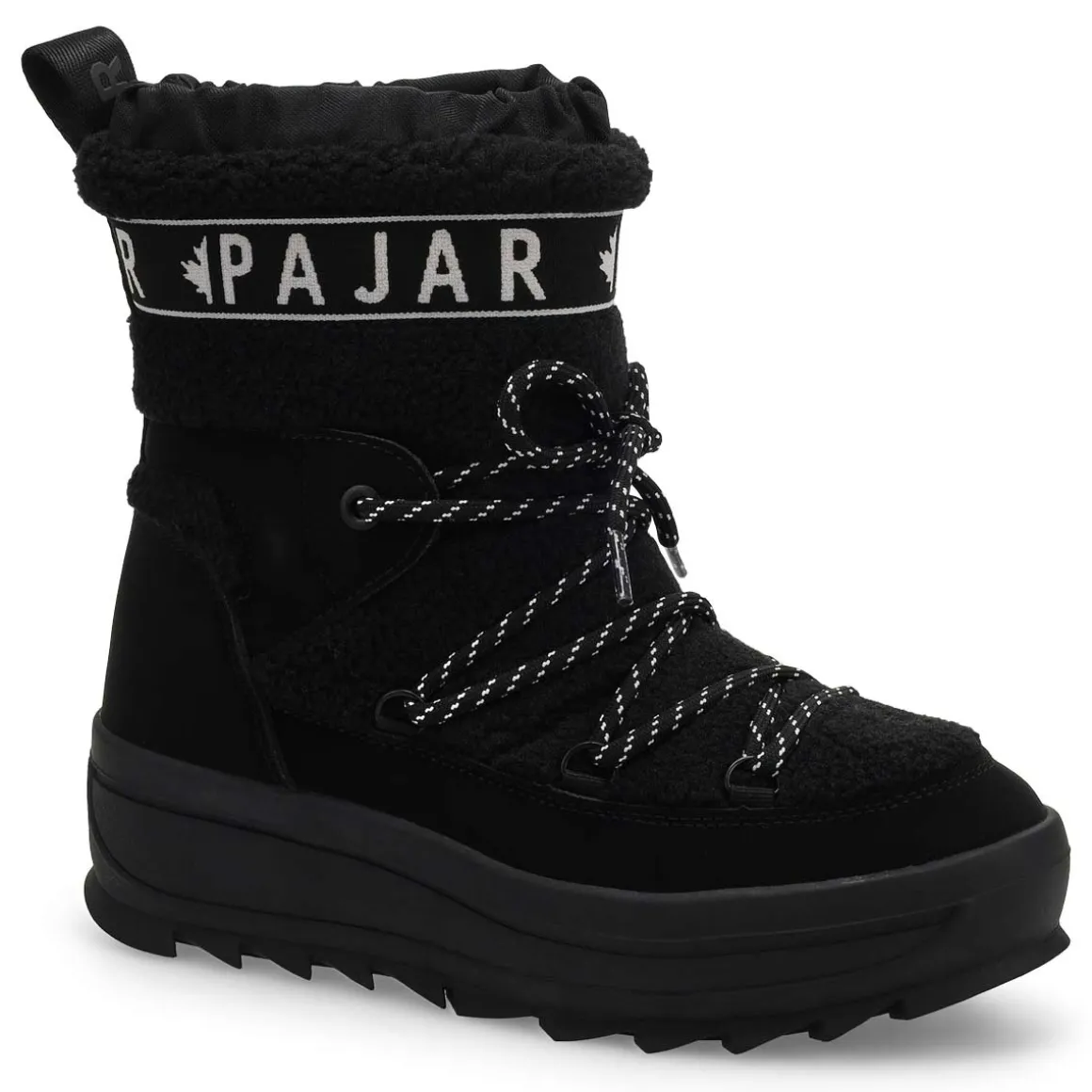 The Galaxy Lama beige Waterproof Winter Boot from Pajar features a combination of Sherpa and vegan nubuck upper. The upper is entirely seam-sealed and comfort rated to -30C to keep your feet snug all winter long with a mudguard. Featuring the signature Pajar Canada thermal rubber traction lug sole with 2-inch platform and will help you through icy streets in style keeping you surefooted all the while.