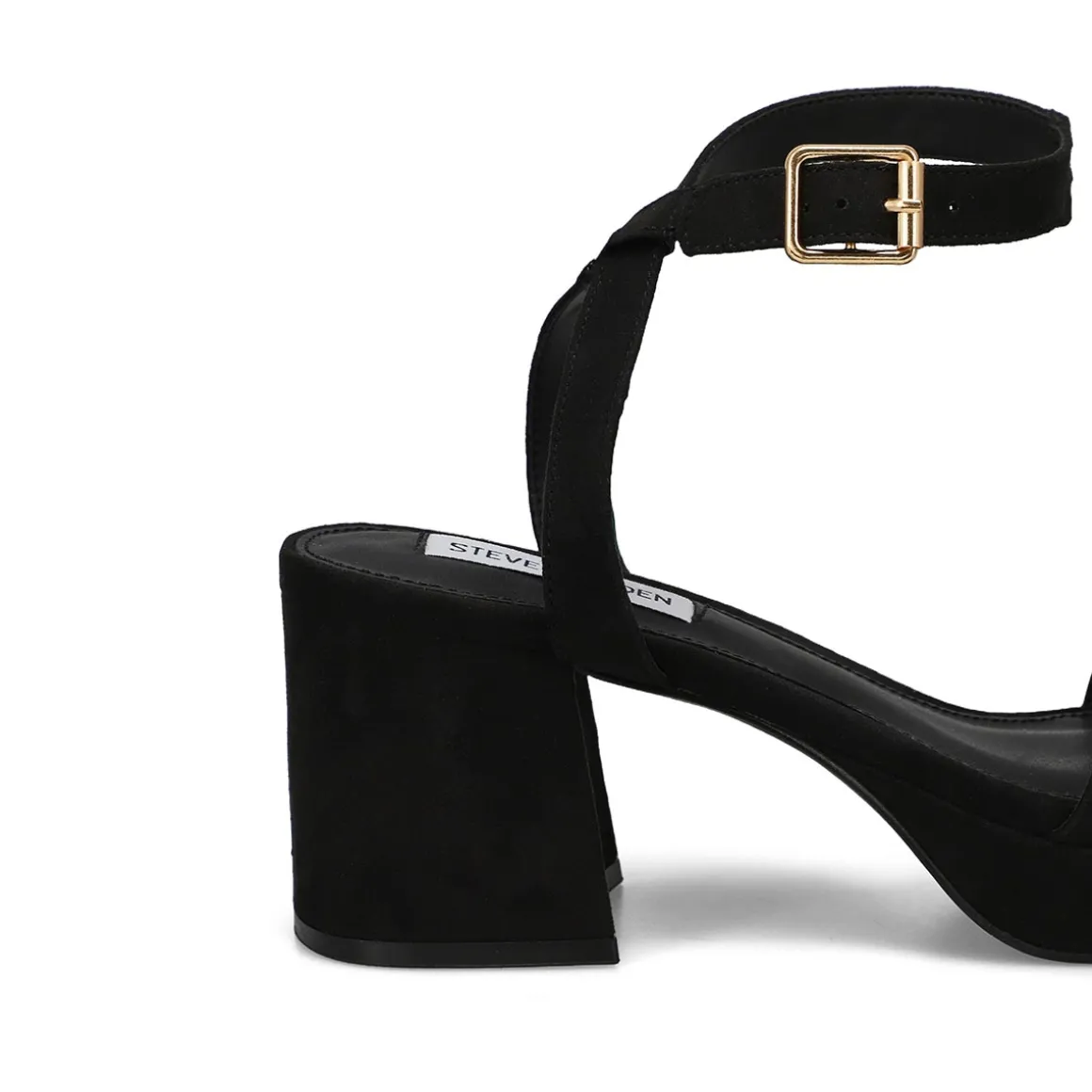 Introducing the Genial black dress heels from Steve Madden. These versatile and stylish heels feature a trendy block heel and chic strap. From a night out to a day at the office, these basic heels will elevate any look. Featuring a suede upper material. Synthetic sole with approximately a 2 inch heel height.