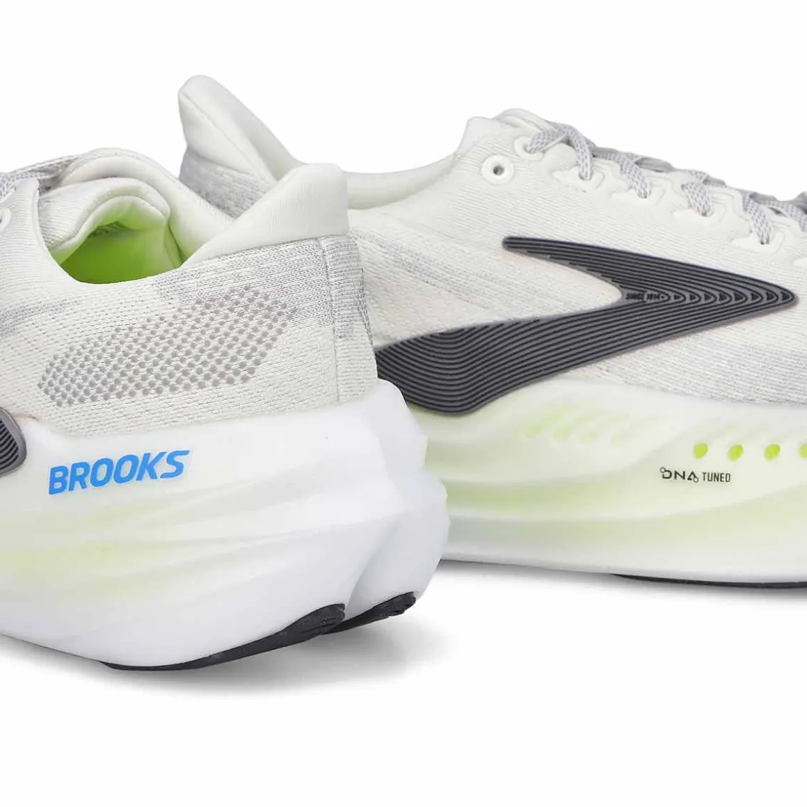 Optimizes airy softness and electrifying responsiveness at every point of every step. Introducing the Glycerin Max lace up Lime/Navy Peany/White Performance Runner from Brooks. Designed with two types of nitrogen-infused cushioning, seamlessly tuned into one midsole. Expertly crafted GlideRoll Rocker features dramatically sculpted bevel and toe spring geometries for effortless heel-to-toe transitions. That’s running redefined. Pronation: Designed for neutral runners, providing even distribution from the front of the foot.