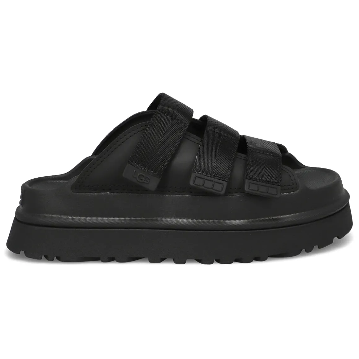 Go ahead, let yourself shine. The GoldenGlow jasmine Slide Platform Sandal from UGG is a versatile sandal with a sunny disposition. The outsole is made with super light and springy sugarcane EVA, it’s airy, easy, and bounces back. The upper features three adjustable straps made from 100% recycled fibers, so you can create the perfect fit, whether you’re rocking socks or not.