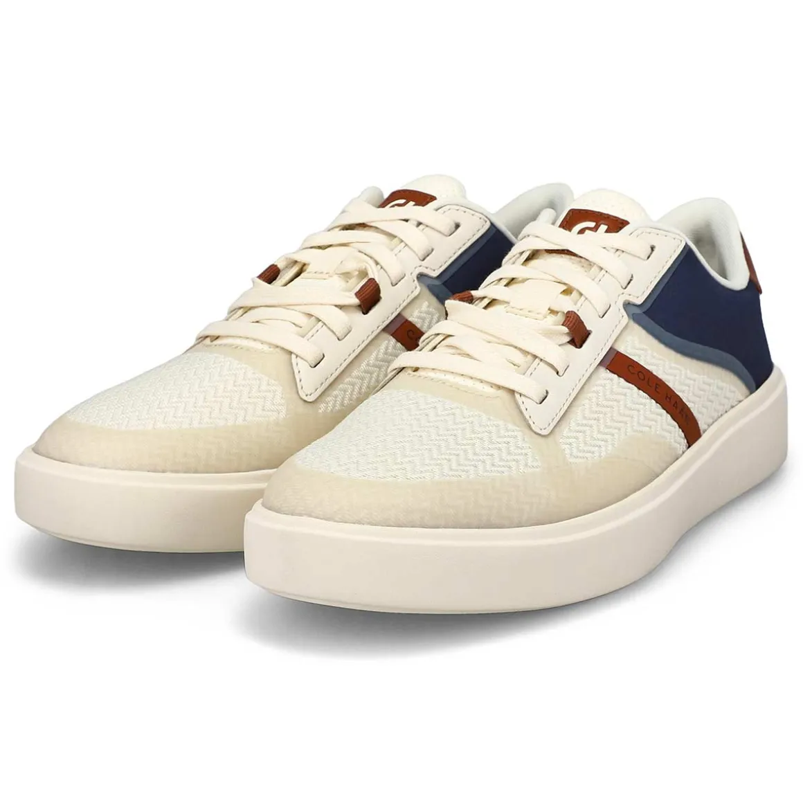 Experience old-school style with modern comfort in the Grand Crosscourt Winner Ivory/Navy Blazer/Dark Sequoia/Natural Tan Sneaker from Cole Haan .From eye-catching zig-zag patterns to sleek solid overlays, this lace-up sneaker delivers retro court style wherever you roam. Built for comfort as much as looks, it features a padded footbed that cushions every step, keeping you stylish and supported all day long.