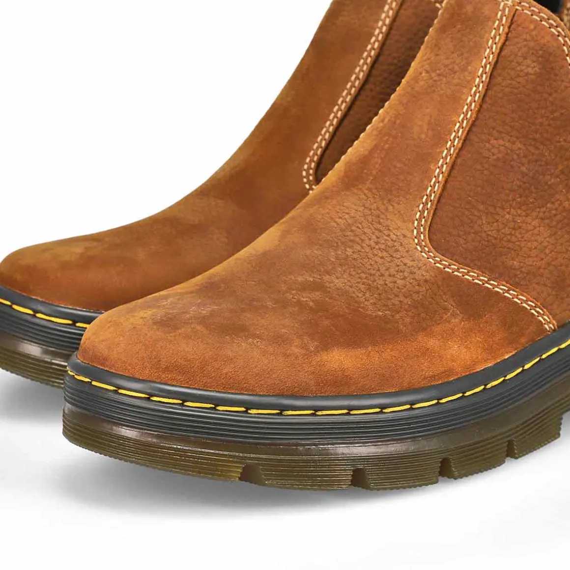 The Hardie II whiskey casual chelsea boot from Dr. Martens’ is a rugged and easy to wear low-cut Chelsea boot. Made with classic Dr. Martens DNA, including grooved edges, visible stiching and heel-loop. Designed with industrial details like a moisture-wicking lining and durable, heavyweight leather — all on top of Dr. Martens’ air-cushioned sole.