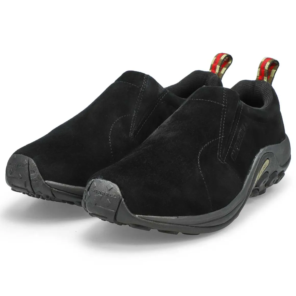 The Jungle Moc Slip On from Merrell is the perfect after-sport moc that creates your ultimate low-maintenance shoe, featuring a pigskin leather upper and Merrell air cushion underfoot for extra support. Merrell air cushion in the heel absorbs shock and adds stability. Compression molded EVA footframe provides cushioning. Molded nylon arch shank.