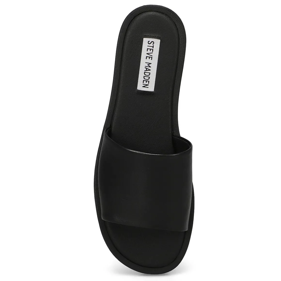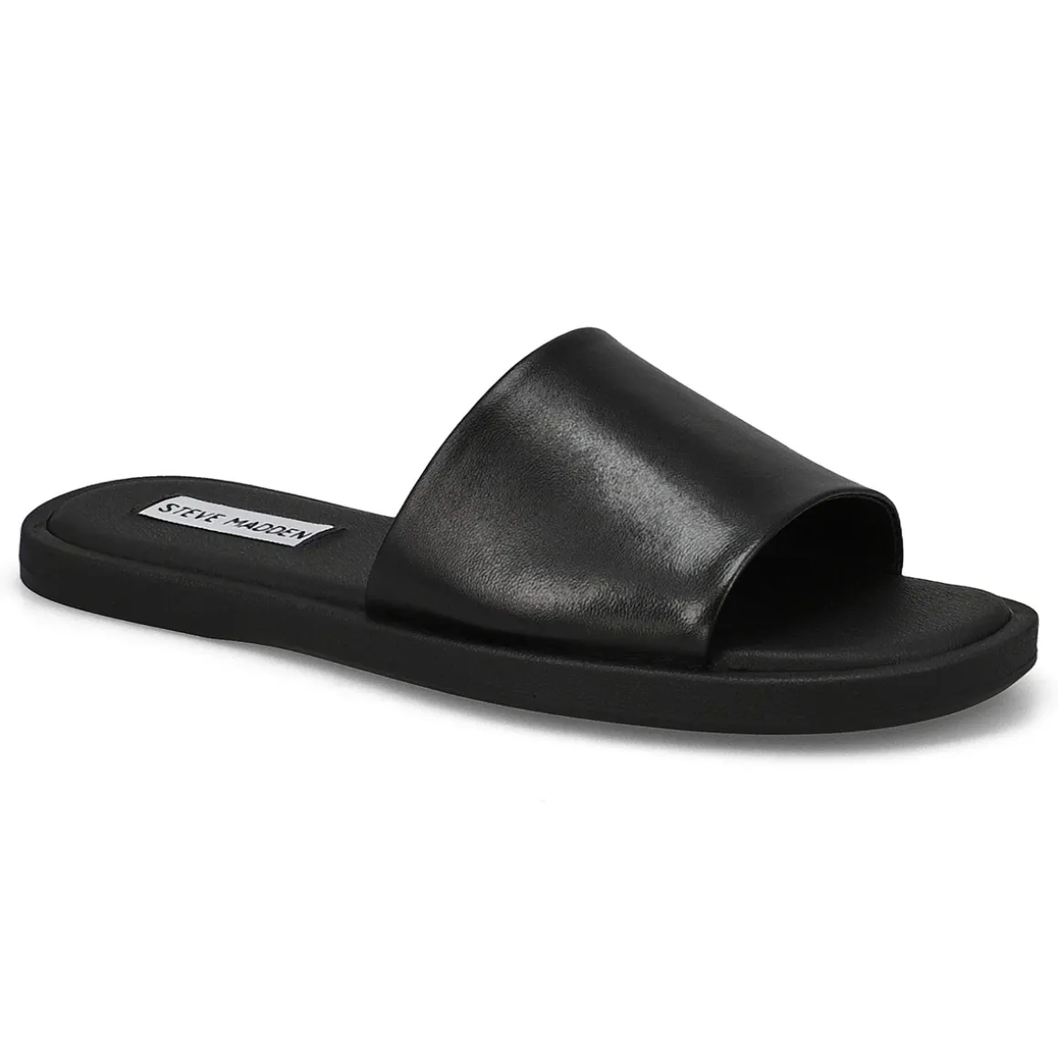 For versatility, style and comfort, Steve Madden has you covered with the Kora brown slide sandal. Features a genuine leather upper. Slip on construction for easy on /off. Padded footbed for all day comfort and a flexible rubber outsole for great durability. The Kora slide is a must have for your wardrobe this season!
