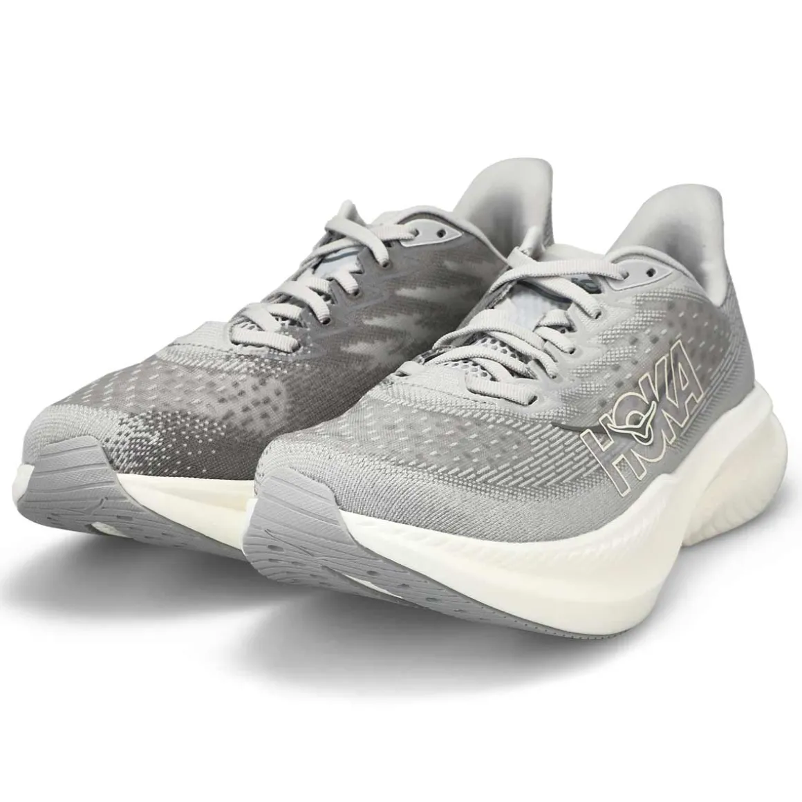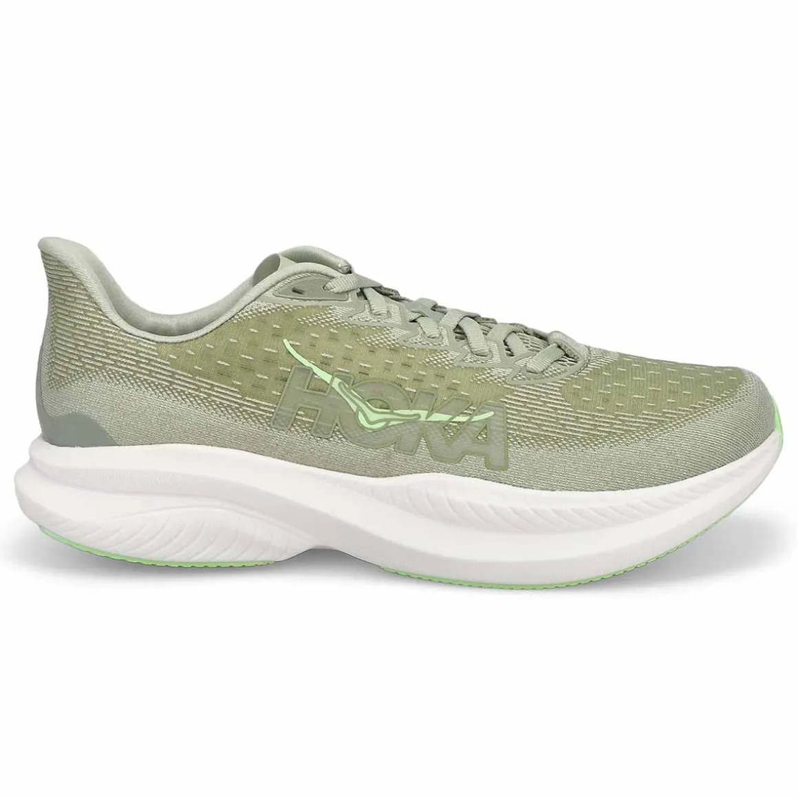The Mach 6 LA lace up Performance Runner from Hoka is a lively trainer that has been fine-tuned for extra energy return with a super critical foam midsole and updated for enhanced durability with strategic rubber coverage in the outsole. Implementing speed focused design details throughout, Hoka enlisted a new creel jacquard upper with zonal breathability and an internal gusset to deliver the foot-hugging comfort required to set your next PR. Heel-to-toe Drop: 5mm.