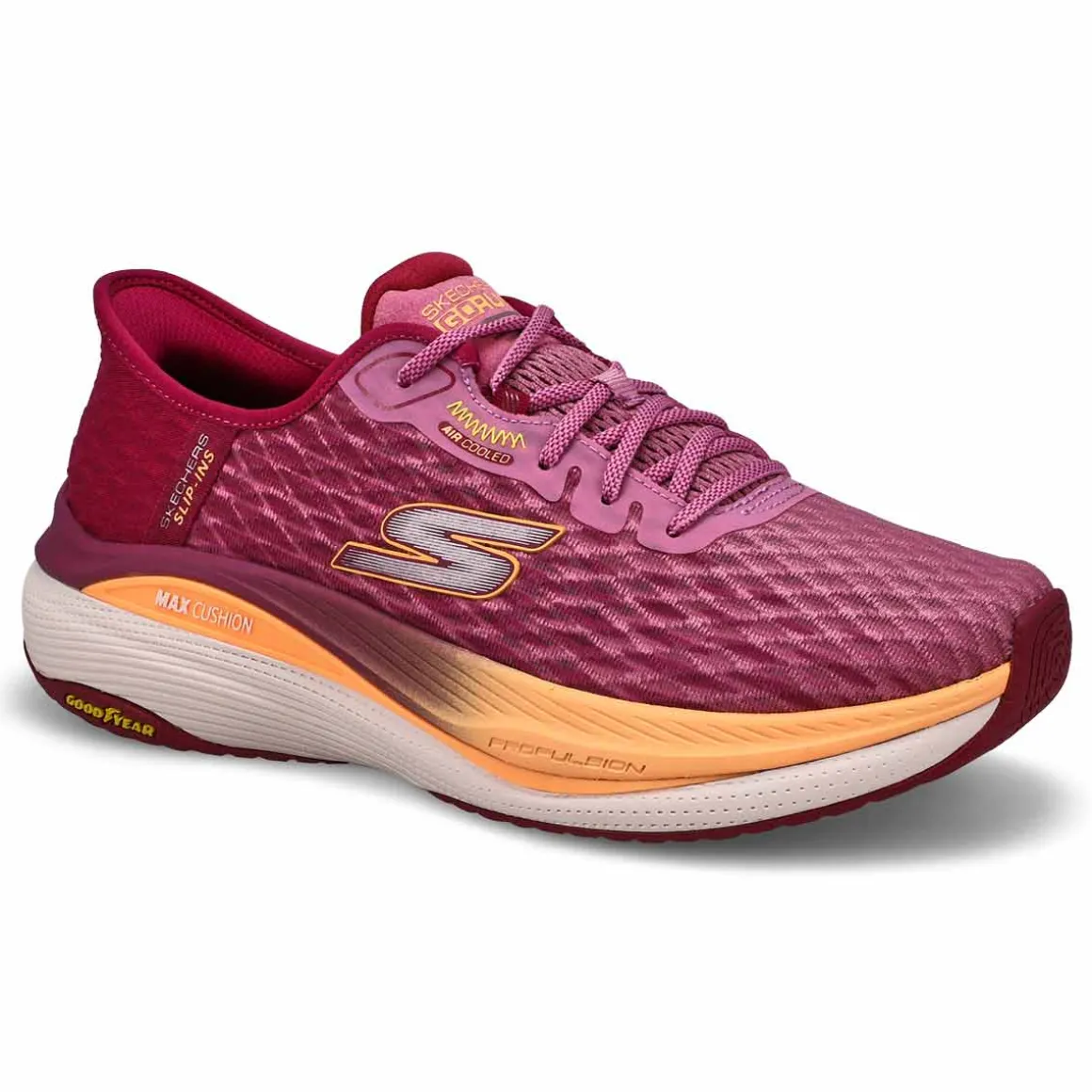 Ultimate supportive comfort meets easy-on convenience in Skechers Hands Free Slip-ins: Max Cushioning Pro Performance Sneaker. Designed with Skechers’ exclusive Heel Pillow holds your foot securtly in place. Features a mono mesh upper with a removable Arch Fit insole. Goodyear Performance Outsole delivers enhanced traction, stability, and durability. Anti-slip under wet and dry conditions.