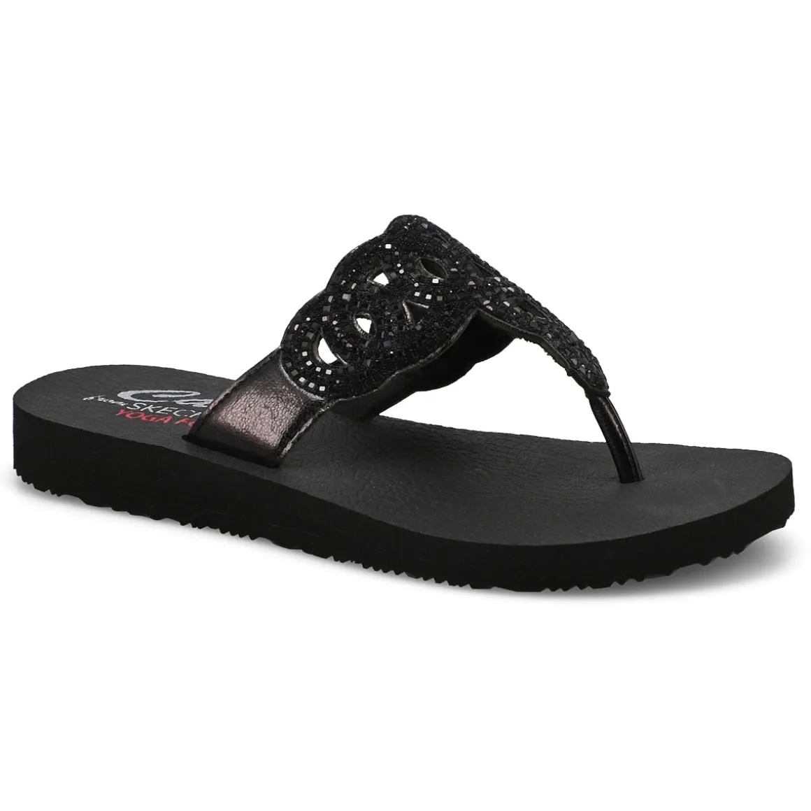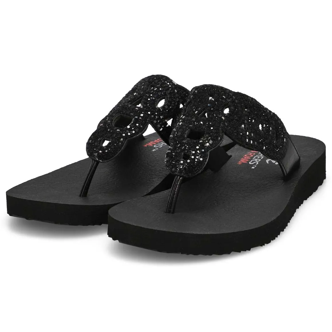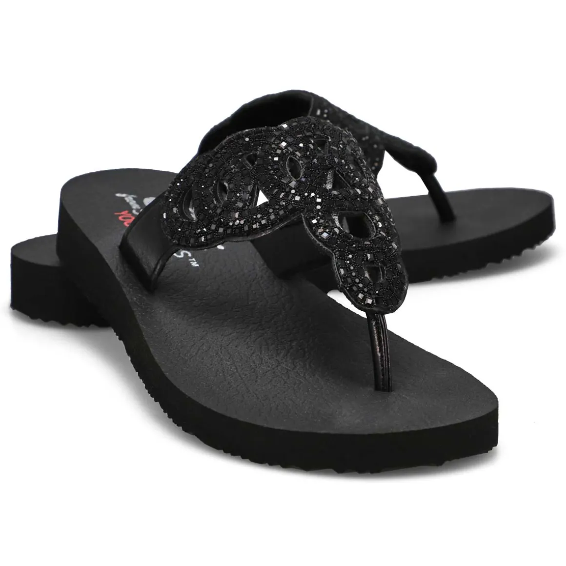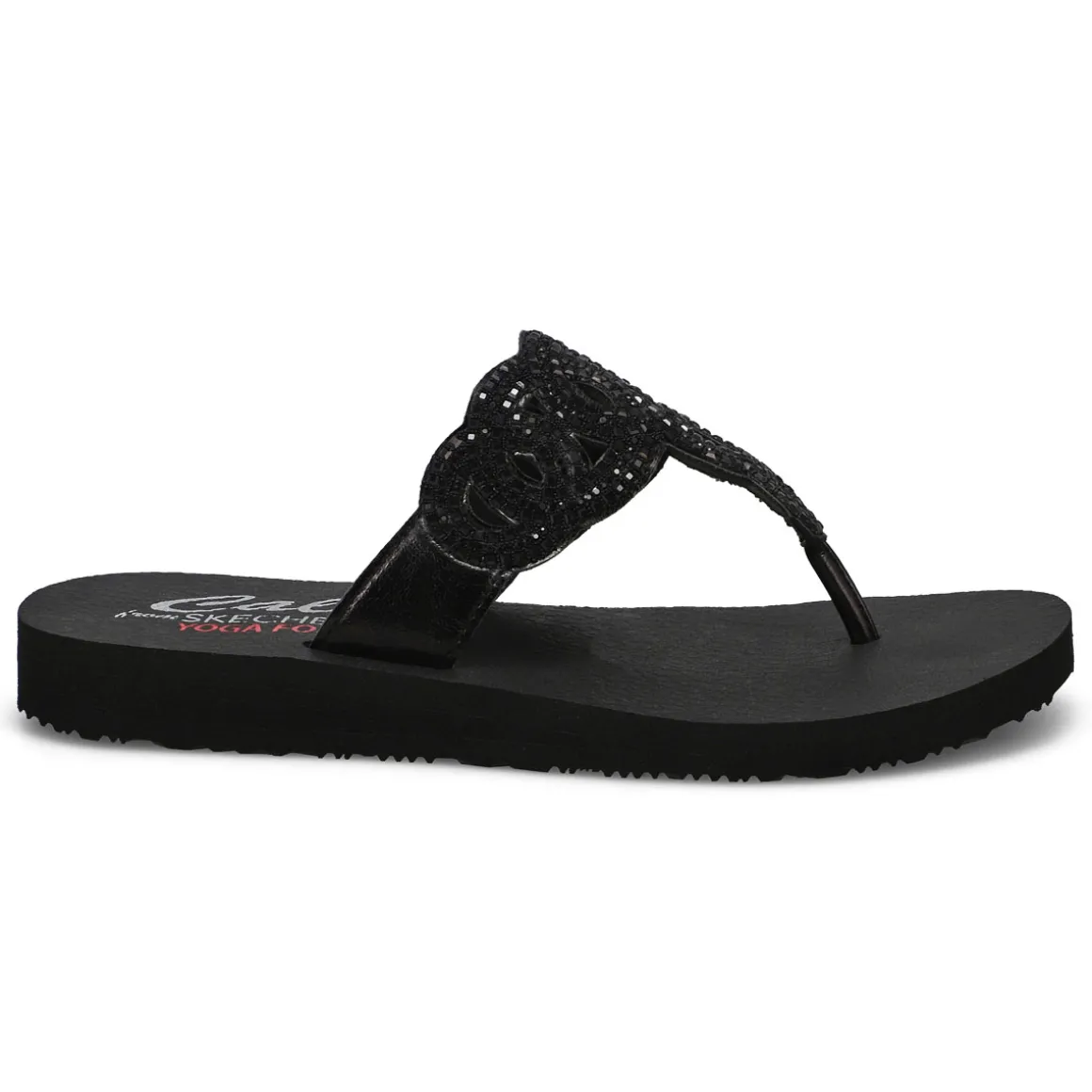 Glam up in style this season wearing the Meditation rose gold Thong Sandal from Skechers. This casual vegan thong sandal features a synthetic upper with rhinestone embellishments and a cushioned Yoga Foam comfort footbed. Crafted with 100% vegan materials. Whether you’re pairing it with flowy dresses or your favorite jeans, the versatile thong silhouette and elegant finish make this a must-have style staple.