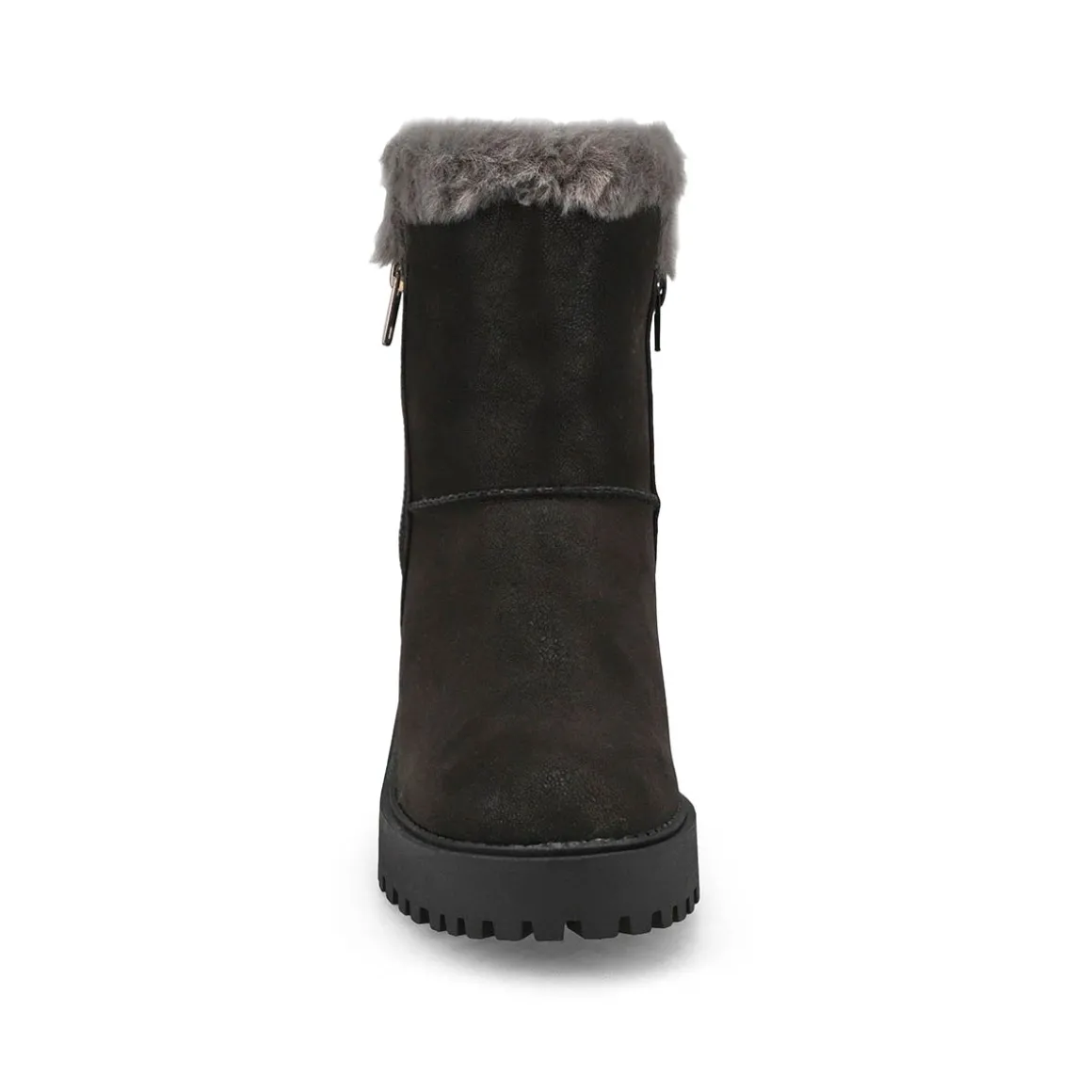 The Natalie Wedge Fur Trim synthetic leather casual bootie from SoftMoc is the perfect boot choice for your outfit that is demanding a cute and cozy look. Featuring a synthetic leather upper. A cushioned footbed to help create all day comfort. The Natalie boot is designed with a durable rubber outsole.