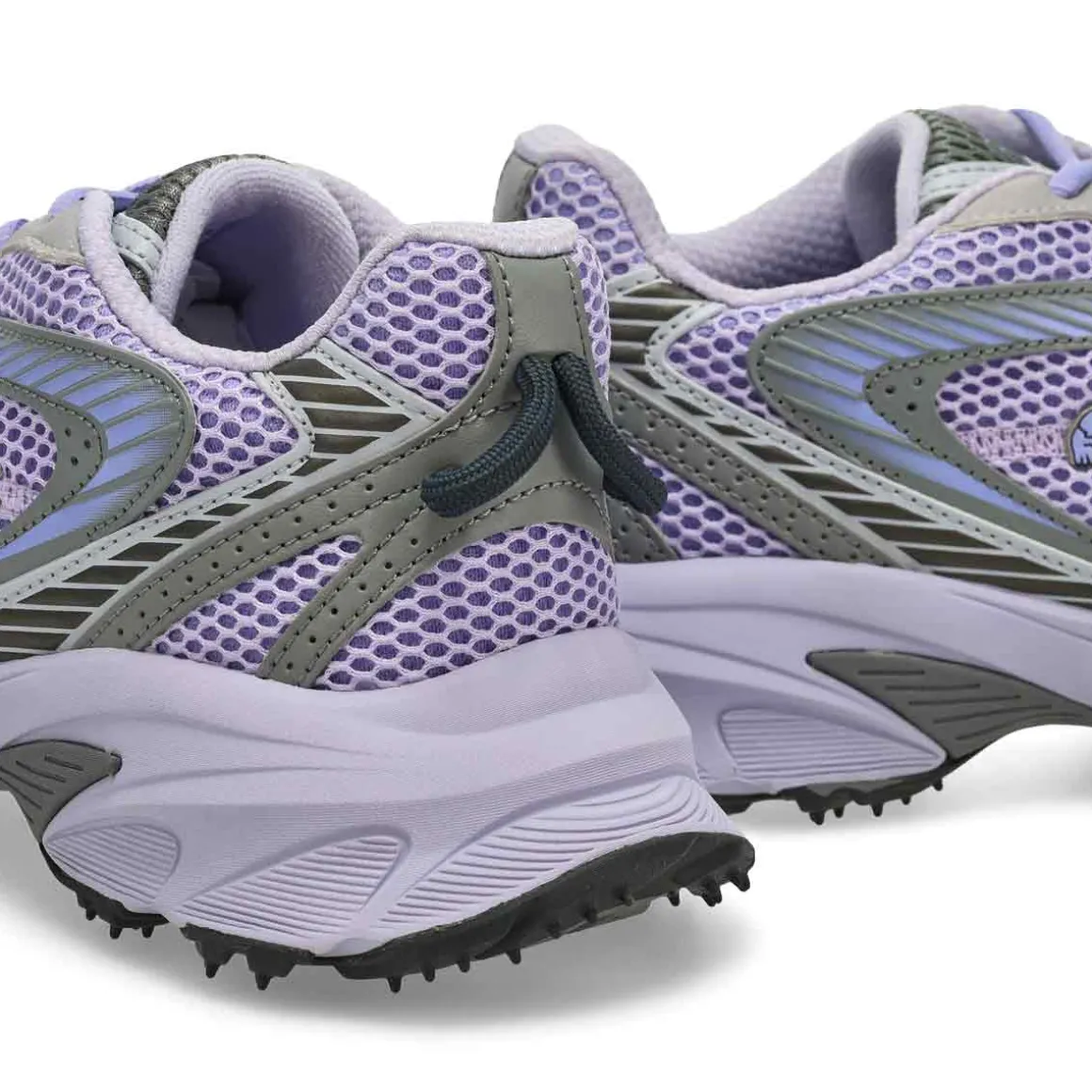 The Neo Shot light purple/ light grey sneaker, the latest creative addition to the L003 line, is a bold, sophisticated running style. Featuring a premium multi-panel upper and an oversized molded sole, for a dynamic, high-contrast look. A blend of fashion and sporting style, with sophisticated technical details including grip picots.