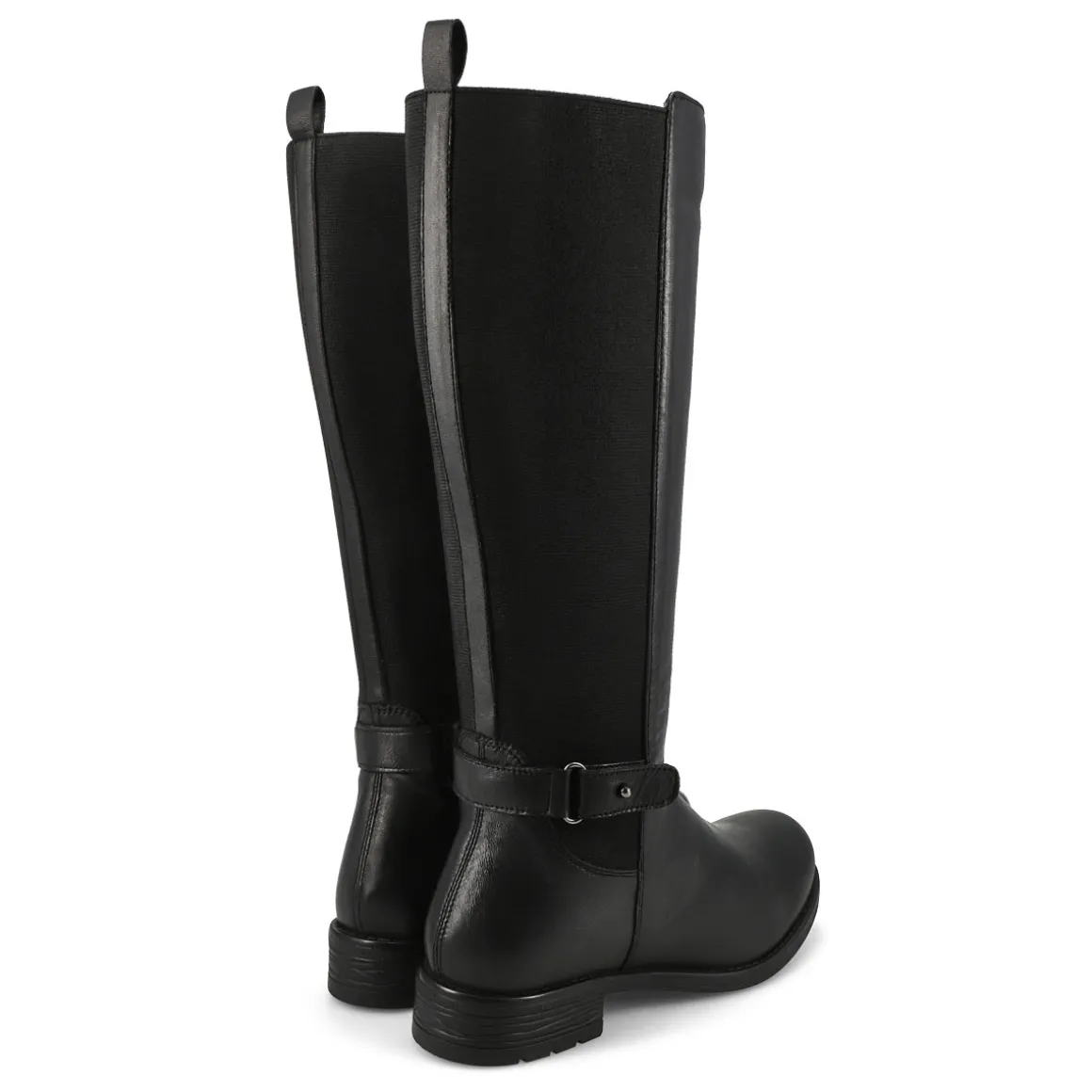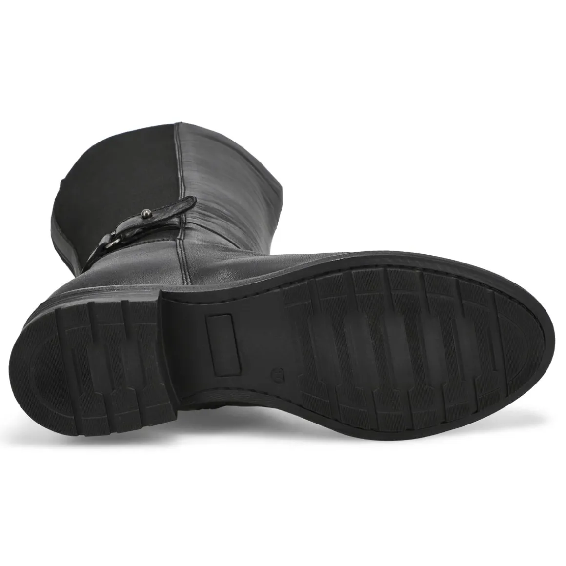 The Omega 2 Tall Riding black boot from Maddison by SoftMoc is the perfect boot choice whether your outfit is demanding a dressed up look or weekend casual. Featuring a genuine leather upper with elastic goring for a great fit. A lightly cushioned footbed with PU/Lycra lining helps create all day comfort. The Omega 2 Tall Riding boot is designed with a durable TPR outsole.