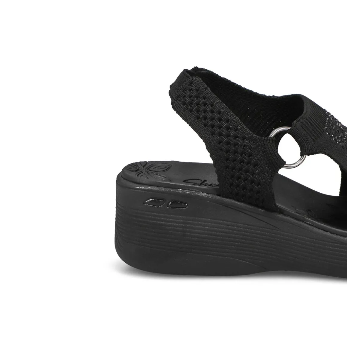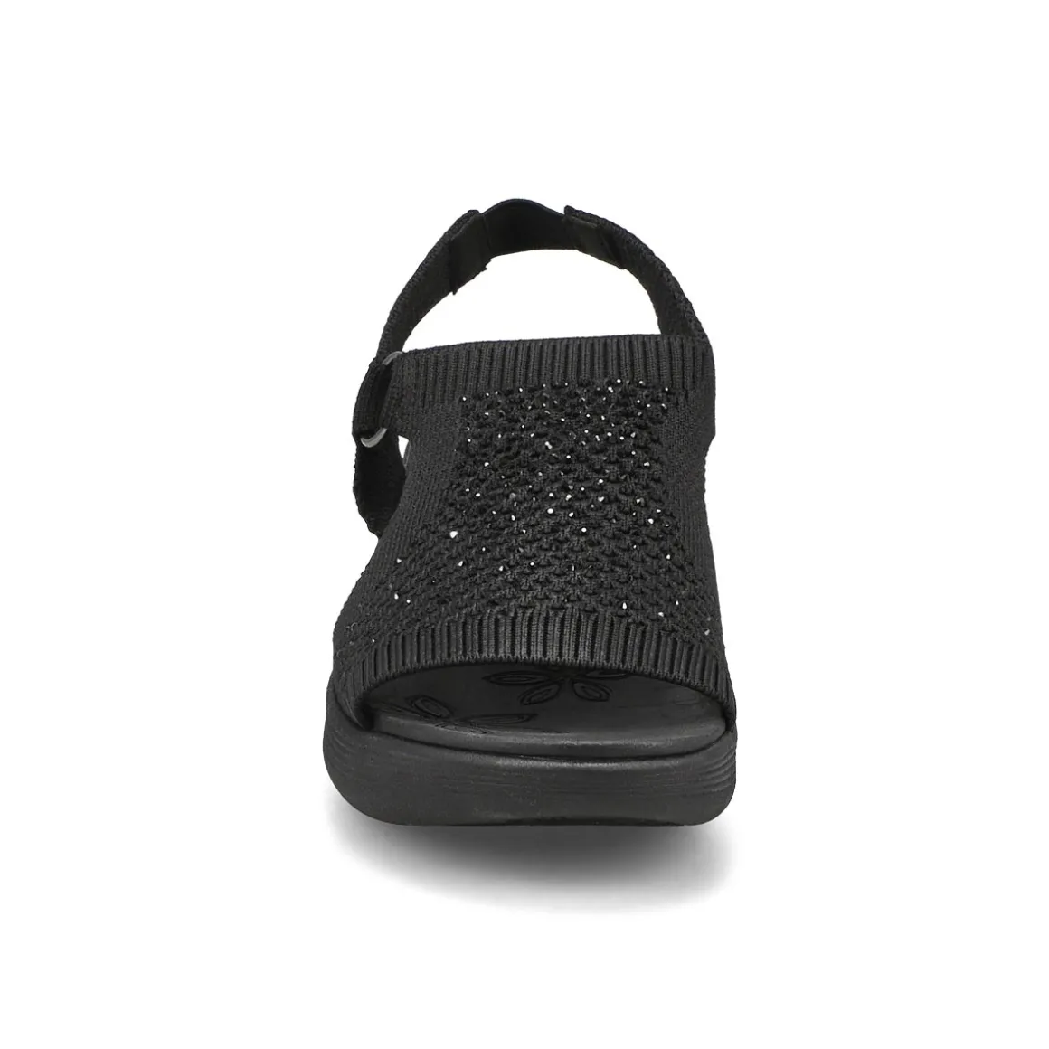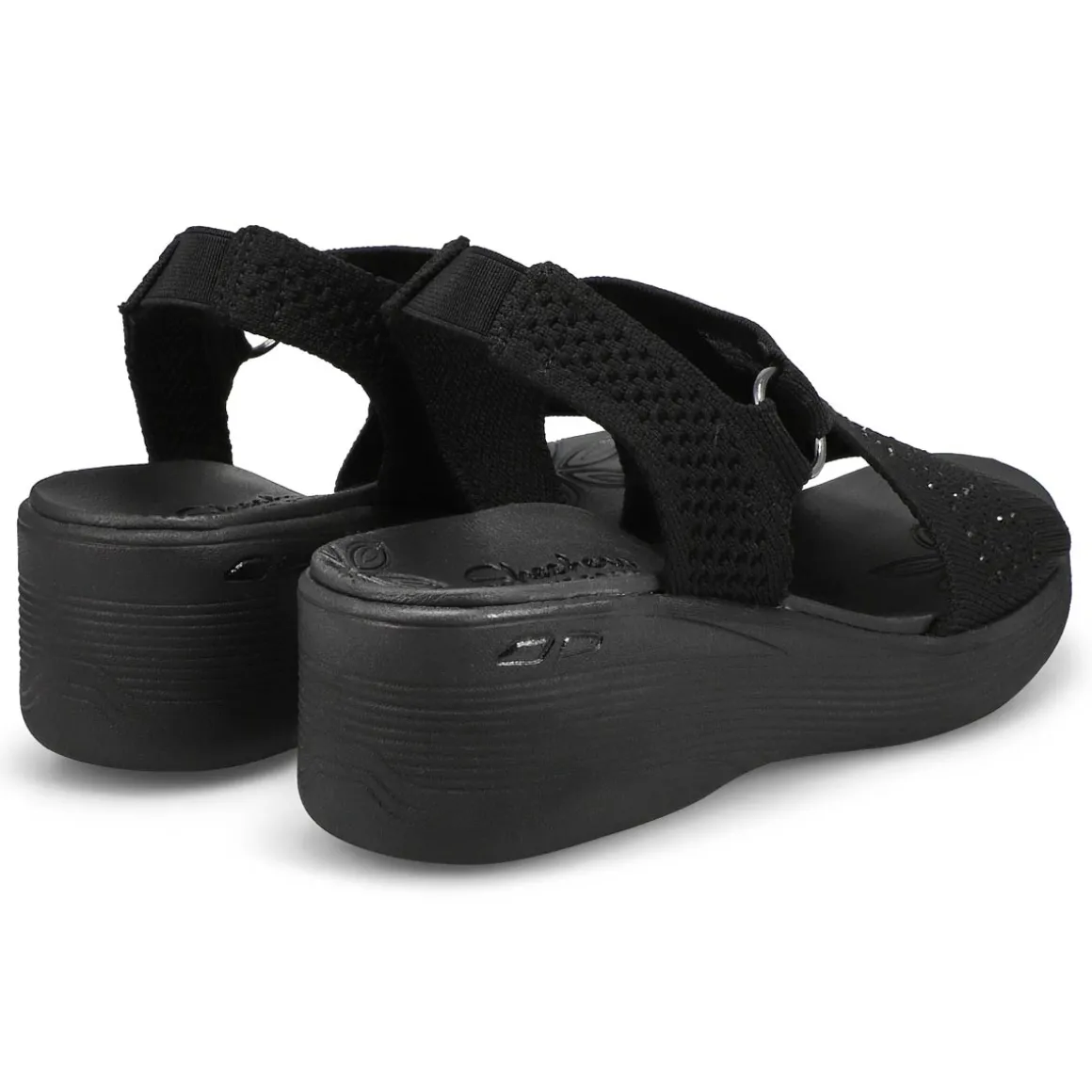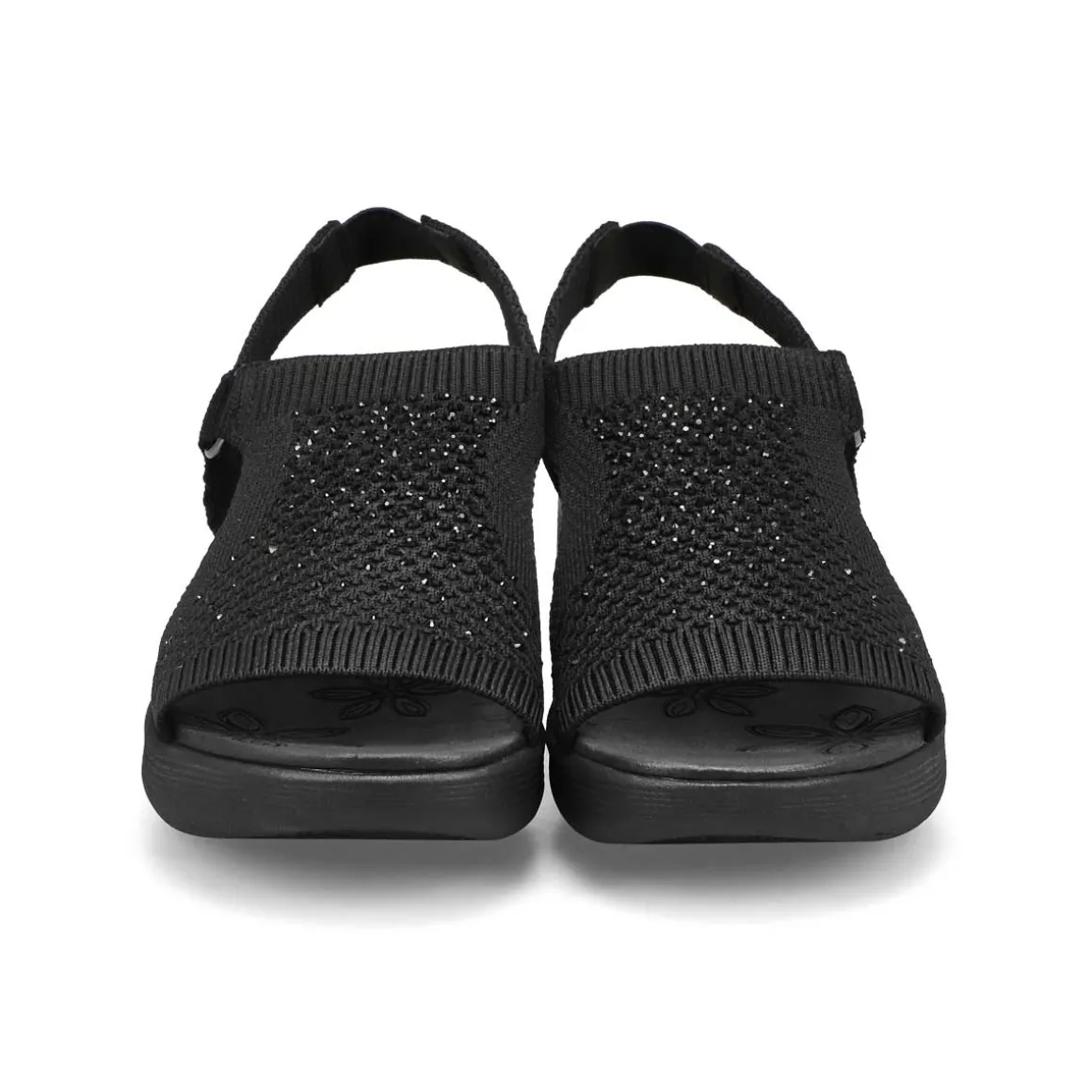 Celebrated lifestyle expert, Martha Stewart, delivers her one-of-a-kind touch to Skechers in this spirited collaboration. Shine on in easy-wearing flair. Pier-Lite Wedge Casual Sandal. This slip-on fashion wedge sandal features a rhinestone knit upper with branded O-loop detail, a Luxe Foam cushioned footbed, wedge midsole, and a hands-free Skechers Slip-Ins backstrap.