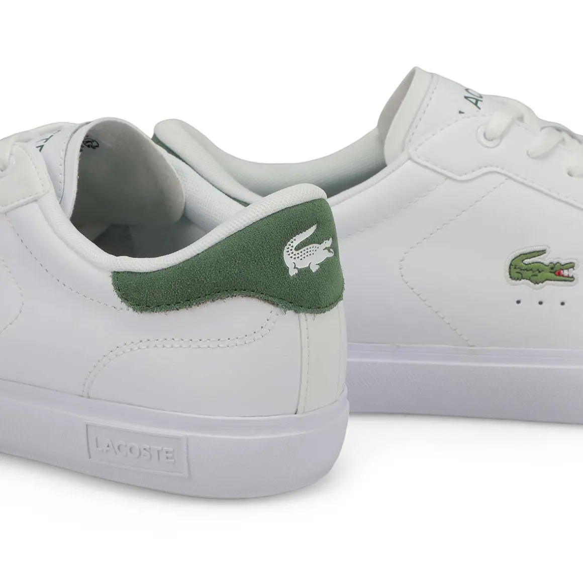 Step out in the Powercourt, a highly versatile court sneaker from Lacoste that delivers a modern spin on the stylish cupsole construction. The uppers are presented in smooth white leather, sitting above vintage-inspired off-white rubber outsoles. A contrast-colour heel piece and branded detailing inject playful hits, while a signature green embroidered crocodile on the quarter signals decades of unsurpassed quality.