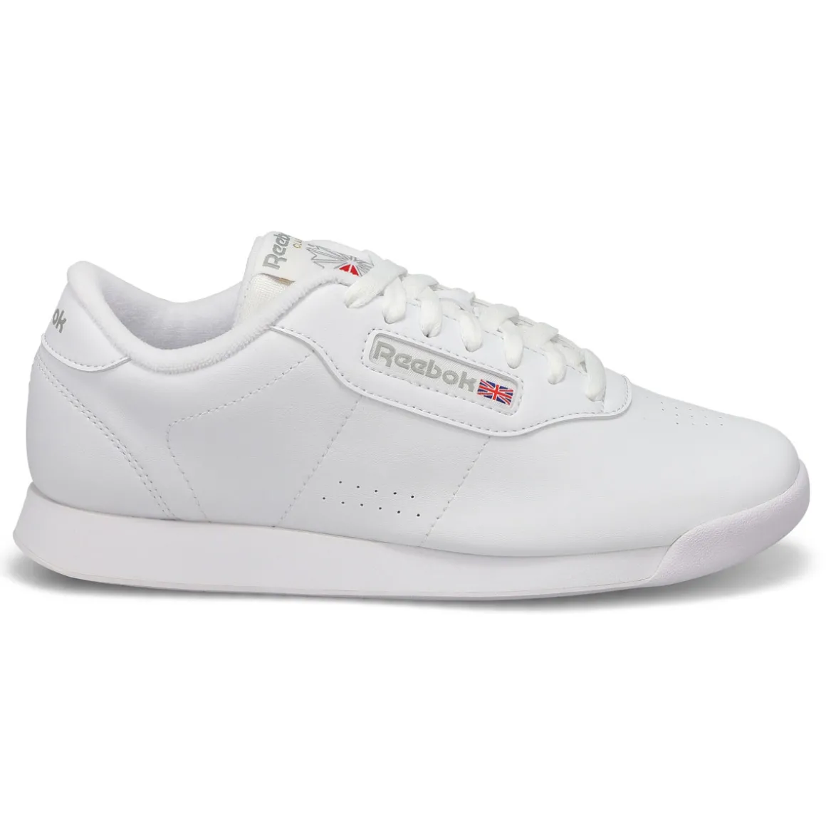 Between cushion and timeless style, let the Princess white synthetic leather lace up sneaker from Reebok cast its spell over you. You’ll fall hard for the clean upper design with subtle perforations and stitching. Featuring a synthetic leather upper. Soft terry lining/moisture absorption and comfort. Padded foam sockliner/comfort and cushioning. Padded foam sockliner adds cushion. Wide Width.