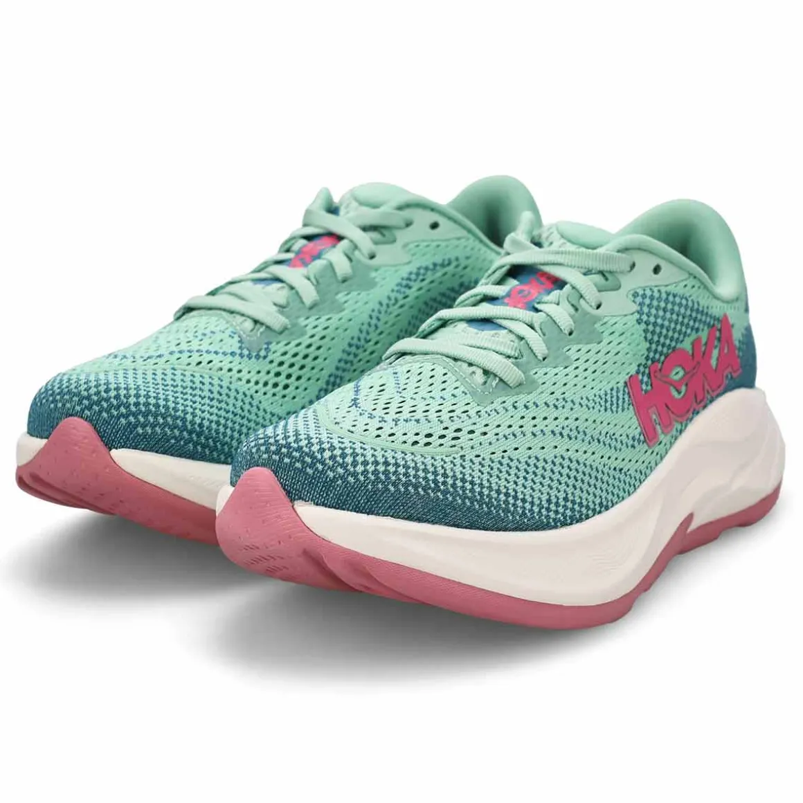Renowned for its startling cushion-to-weight ratio, the Rincon 4 Jadeite/Alpine Blue lace up Performance Runner from Hoka received a top-to-bottom makeover to ensure the uber-light softness it’s famous for lasts through even more miles. Upgraded foam provides better rebound while increasing longevity, and works together with rubberized EVA to make each step feel softer than the last. With a durable podular outsole design and a more foot-hugging fit than before, this daily trainer is engineered for a longer life without weighing you down. Heel-to-toe Drop: 5mm. Wide Width.