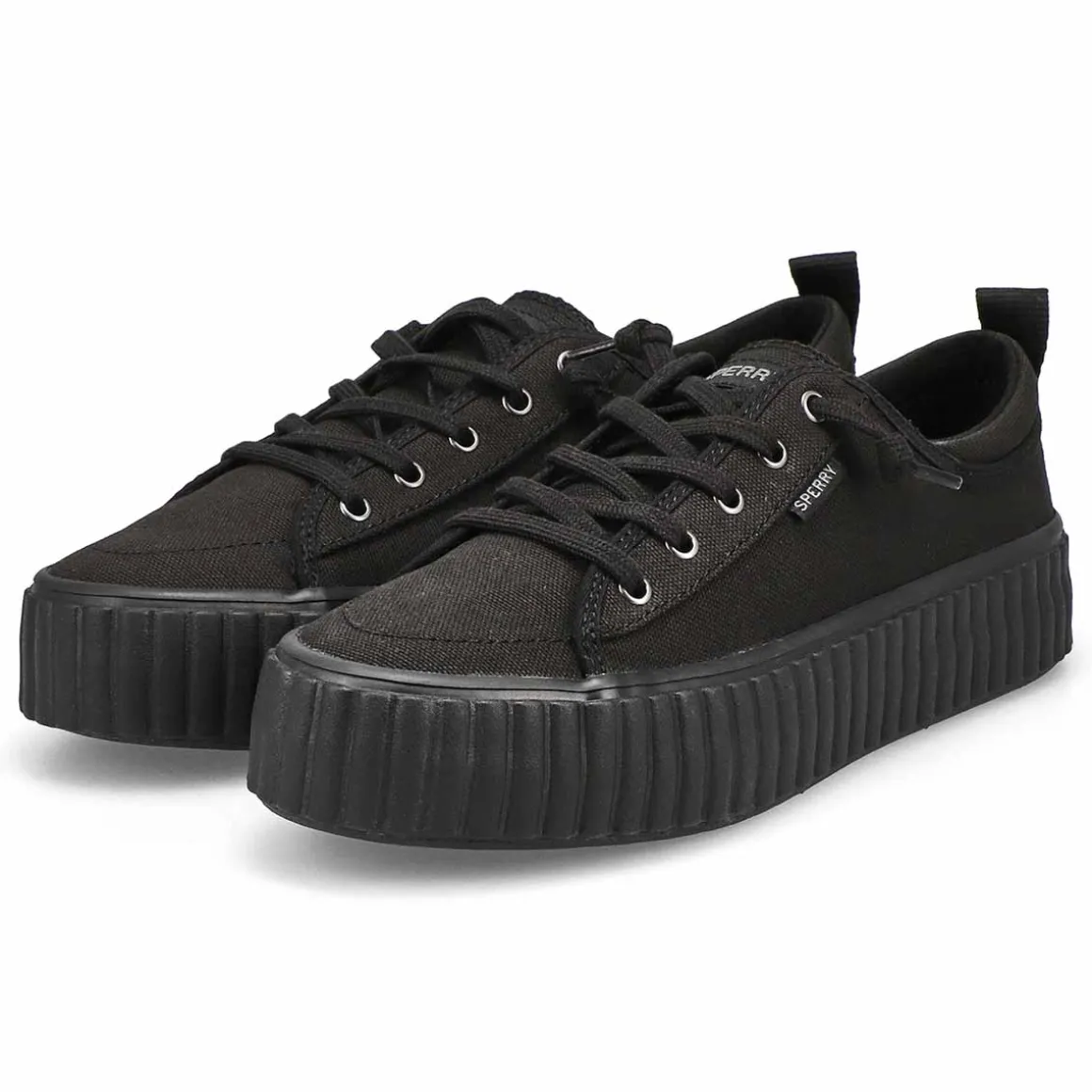Diversify your everyday wardrobe with the SeaCycled Pier Wave Platform LTT black sneaker from Sperry Top-Sider. As a part of the SeaCycled Collection, this pair sports a cotton upper made of 100% recycled materials. The chunky platform sole adds some trendy flair. Memory foam cushioned footbed provides all-day underfoot comfort. Outfitted with a hidden gore entry for easy on/off wear and a lace-to-toe design with knotted cotton laces,