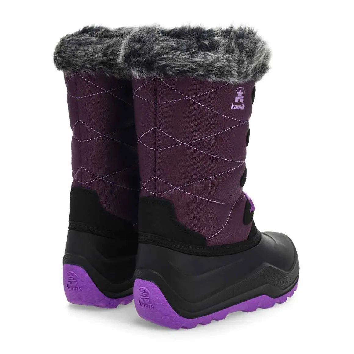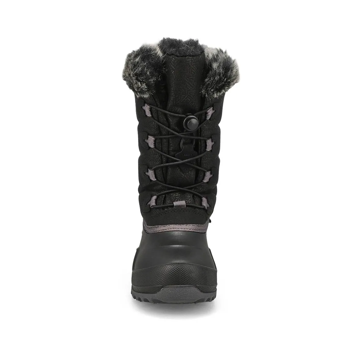 The Canadian-made Snowangel black winter boot from Kamik is an insulated boot that has what it takes to keep your little angel cozy, toasty and happy all winter long. Comfortable down to -40F/-40C , designed with a waterproof and recyclable lightweight synthetic RubberHe shell, and featuring an outsole with multi-directional treads for stability in in the deep snow, your little one can run around and make snow angels all day long.