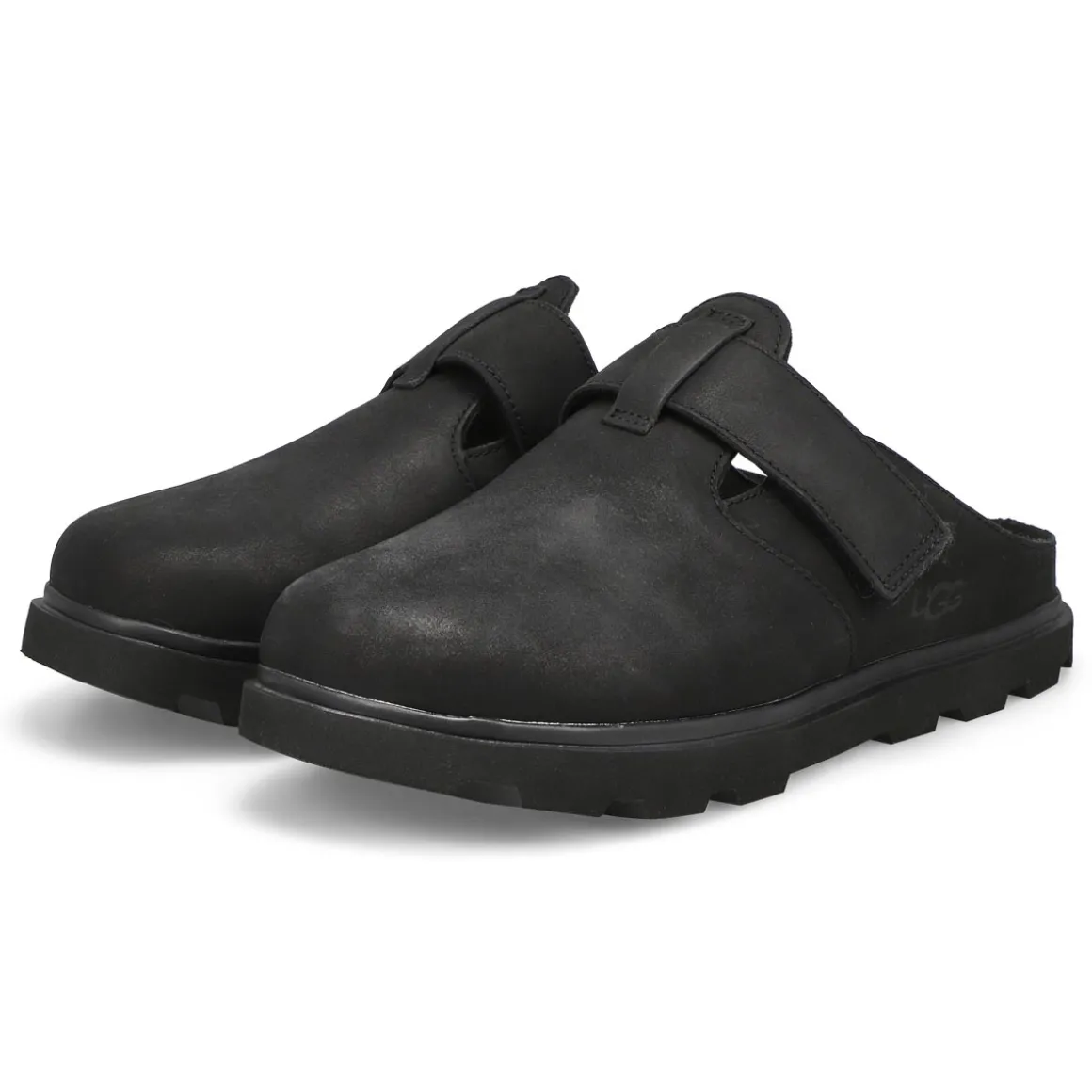 Diversify your portfolio with the Solano black Clog from UGG. Invested in polish and comfort, this slip-on has a silky Nubuck upper with an adjustable strap. The soft microfiber footbed gives easy breathability, while the lugged sugarcane EVA outsole provides maximum comfort and essential support. Talk about a sure thing.