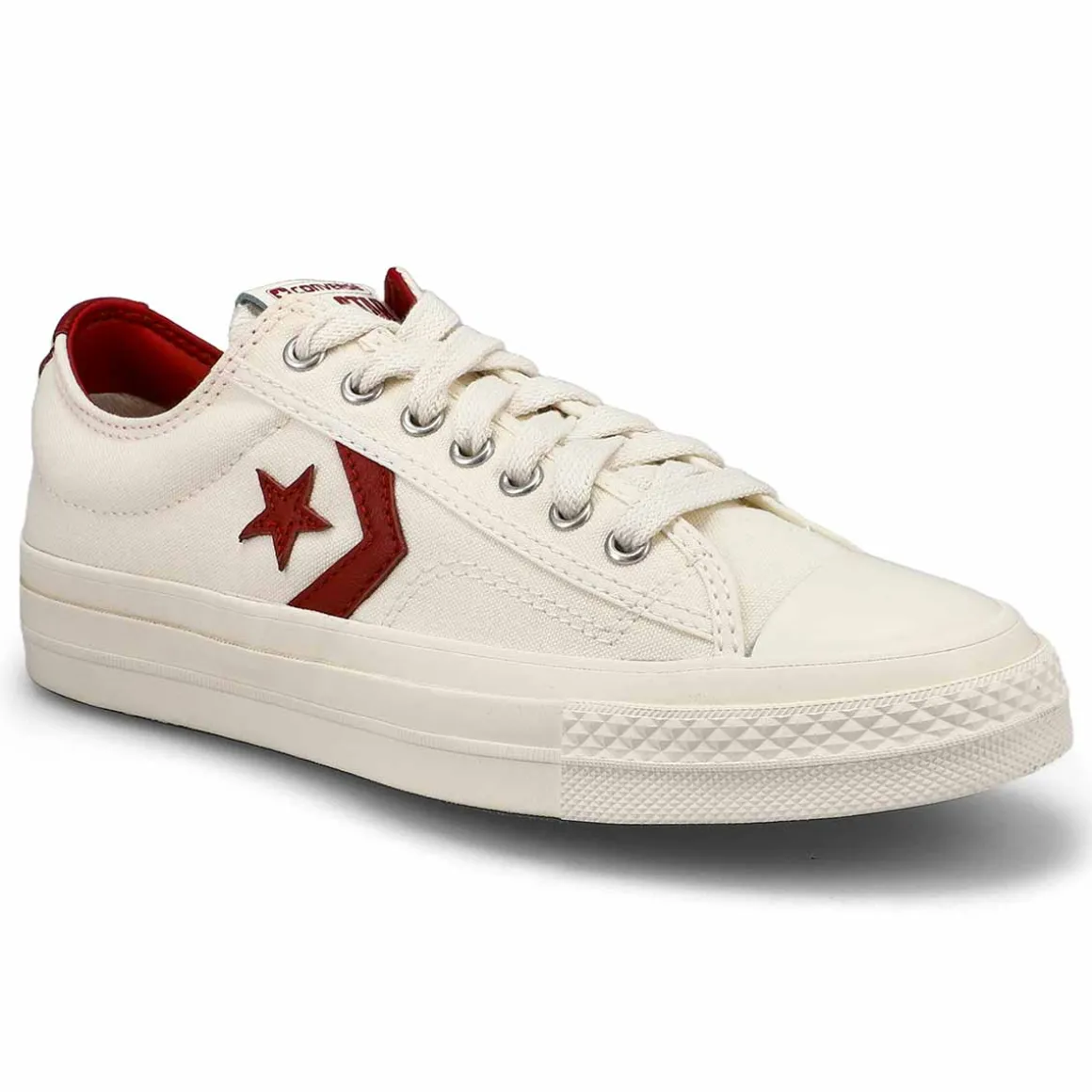 Up your shoe game in the street-ready Converse Star Player 76 egret/park red. Vintage details and retro colours combine for a look that belongs in your starting lineup. A gem from the archive that’s rooted in sport and reborn for the streets. Heavyweight canvas, archival nods and added comfort make this Star ready to shine again.
