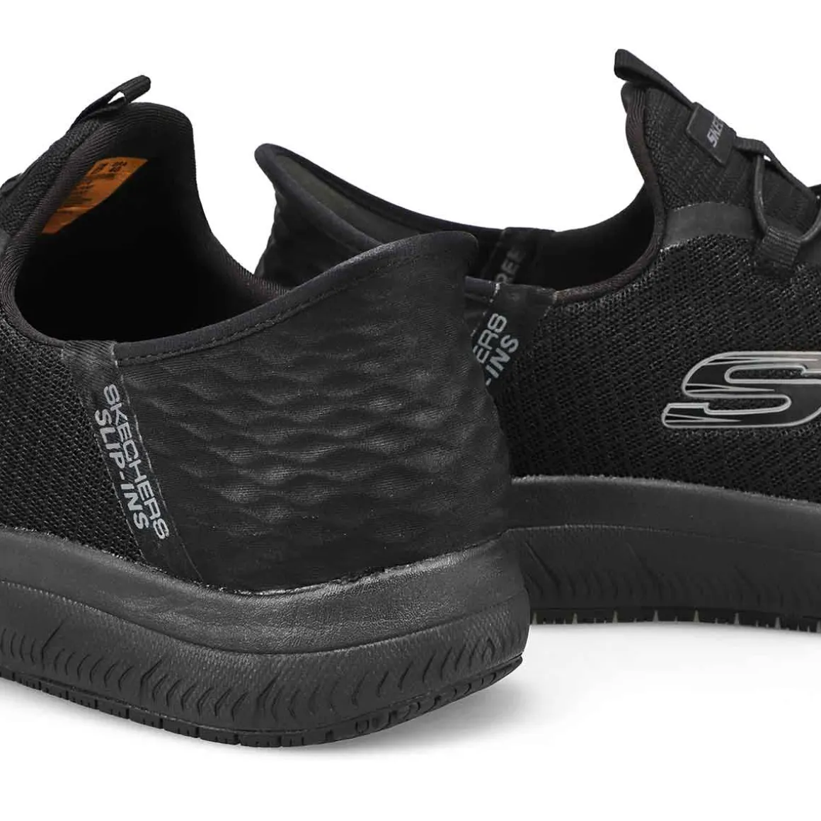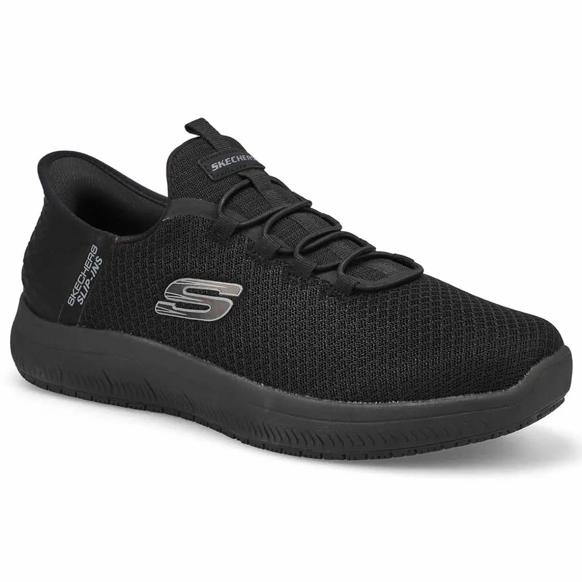 Experience slip-resistant safety with Slip-Ins convenience wearing the Skechers Hands Free Slip-Ins Work: Summits Slip Resistant Sneaker. This Touchless Fit work style features a knit mesh and synthetic upper with Skechers’ exclusive Heel Pillow, a slip-resistant outsole, plus a Skechers Air-Cooled Memory Foam cushioned comfort insole. Slip-resistant traction outsole. Wide Width.