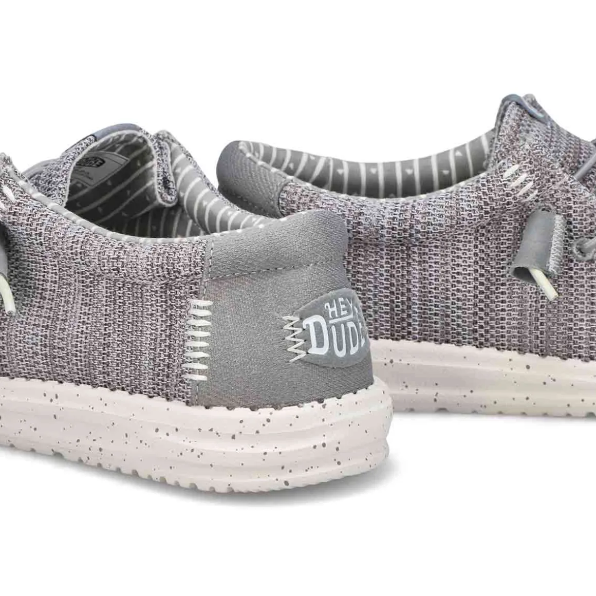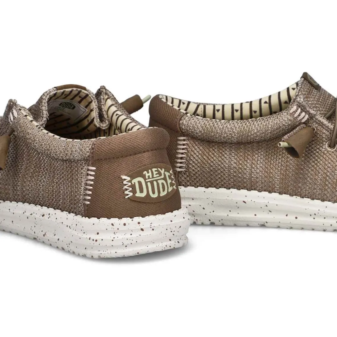 The Wally Stretch Sox casual from HEYDUDE will be an instant favorite in your casual collection. Featuring a linen upper with a round toe design. Low-top, chukka construction with a soft, oxford cloth lining that surrounds the foot in comfort. Memory foam cushioned, removable insole. The Wally Stretch Sox casual shoe is designed with an ultra-light, lugged synthetic outsole.