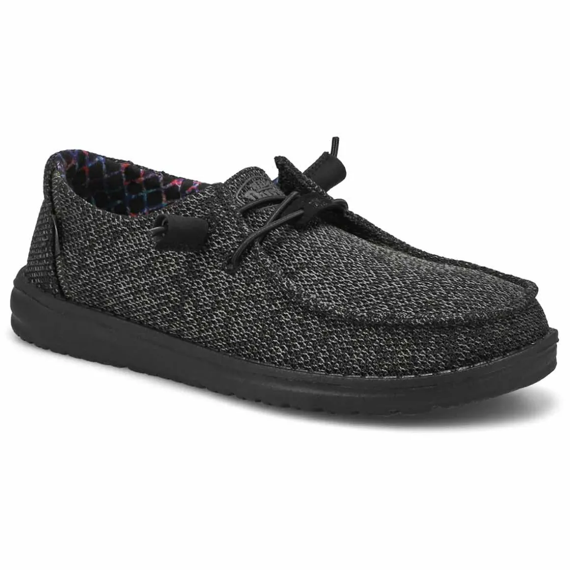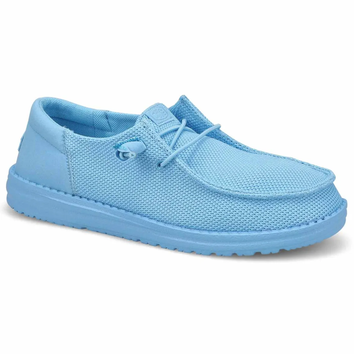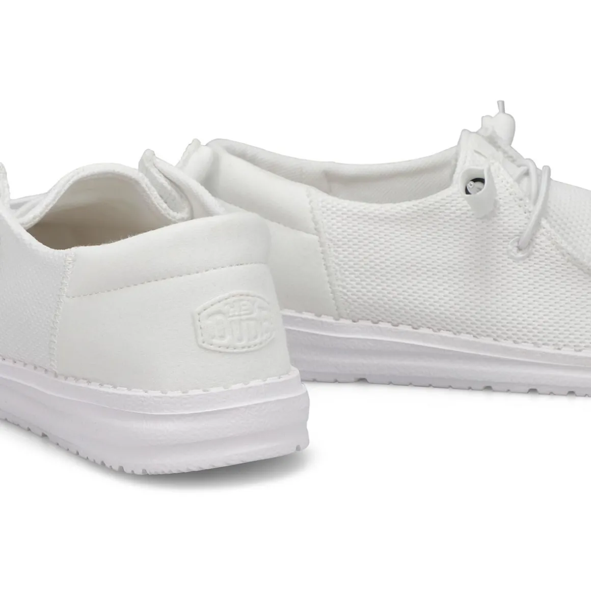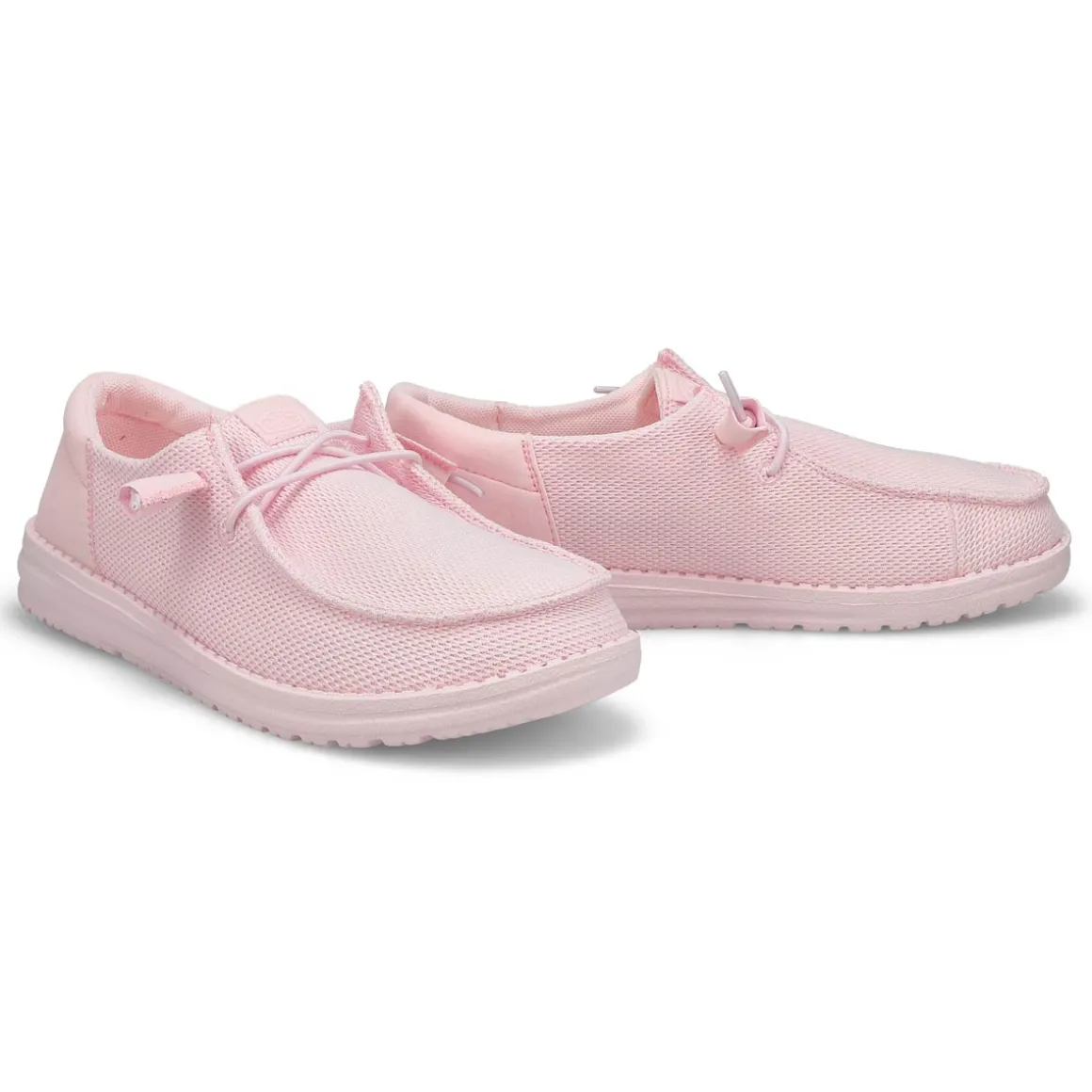 HEYDUDE’s iconic low-top moc with a custom look. Plus a little extra height and a little extra cushion. The Wendy Funk Mono Casual light pink shoe from HEYDUDE is still super lightweight. Easy-On system and their patented UltraLIGHT EVA outsole for superior comfort. Featuring contrasting textures and hand-stitching at the heel.